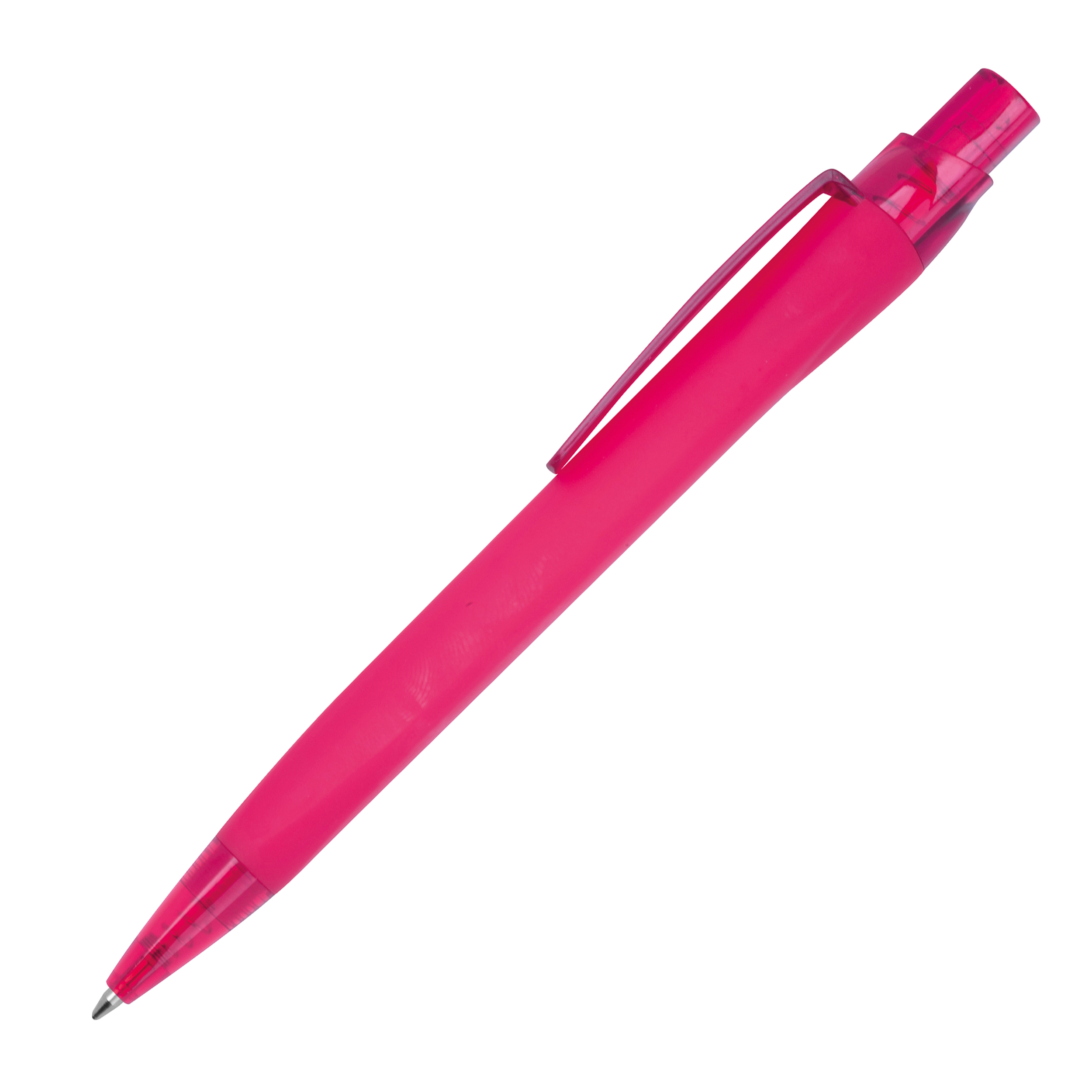 Gummierter Kugelschreiber aus Kunststoff mit blau schreibender Großraummine (Schreiblänge ca. 800m). Ihr Logo drucken wir auf den Schaft.