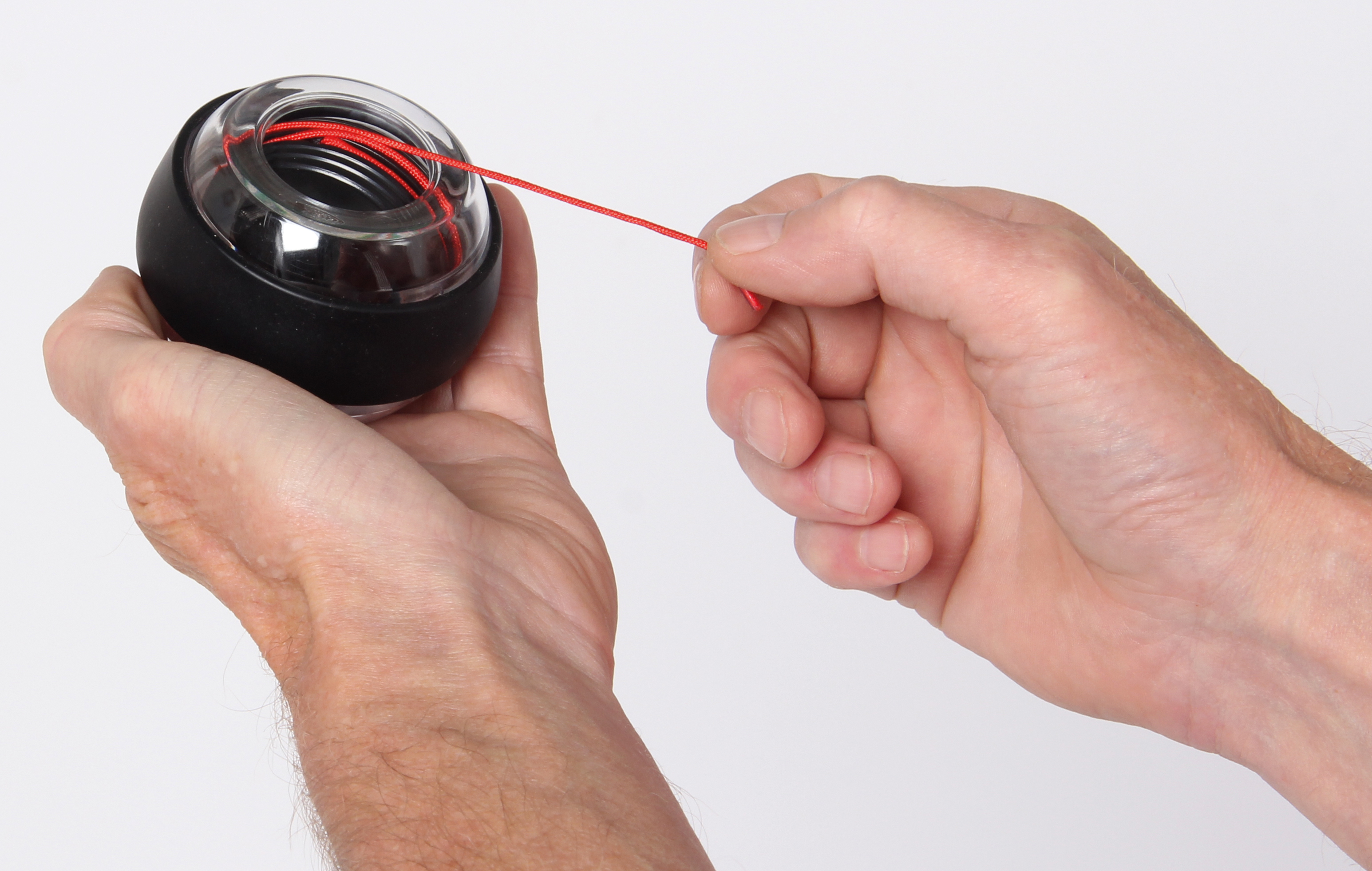 Training mit Spaß! Wird der Ball in der Kugel aus Kunststoff mit der Kordel angedreht entsteht durch den Schwung eine Kraft die das gefühlte Gewicht der Kugel erhöht! Tolles Training für das Handgelenk und die Finger. In Geschenkverpackung.