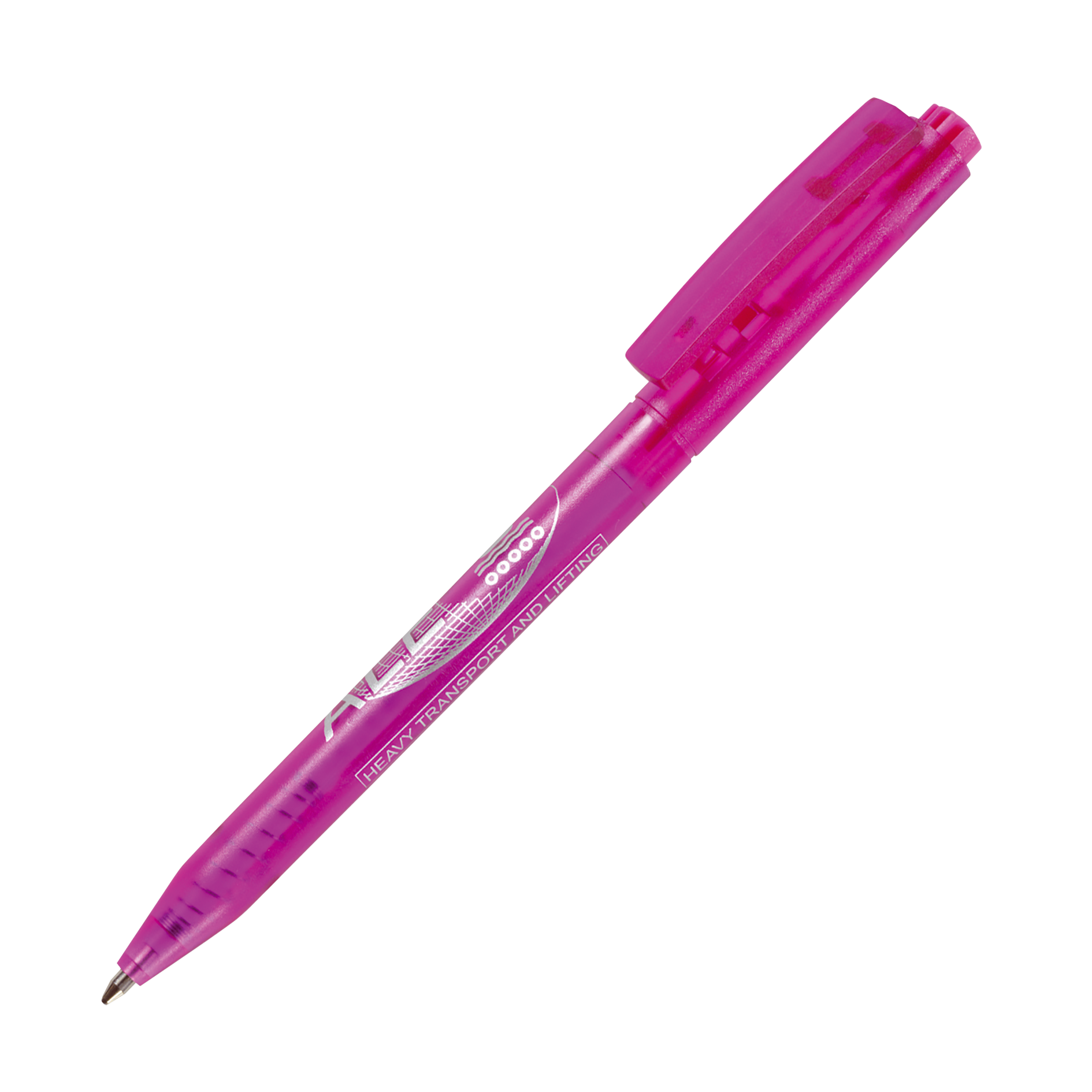 HALLIGEN transparente Kunststoff Kugelschreiber Peekay, gefrosteter Plastik-Kugelschreiber mit Schaft und Clip aus 1 Teil, mit einzigartigem Clip-Druck-Mechanismus und mit blauschreibender Mine X-20