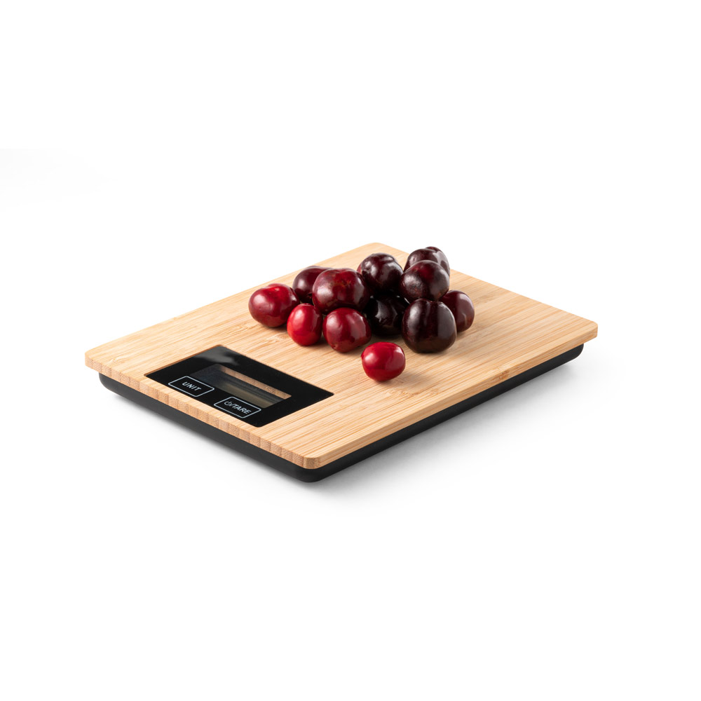 Digitale Küchenwaage aus Bambus mit Tara-Funktion. Wiegekapazität bis zu 5 kg. Enthält 2 Batterien AAA. Geliefert in einer Kraftpapierschachtel. Da das Produkt aus natürlichen Materialien hergestellt wird, können Farbe des Produkts sowie das Druckergebnis von Produkt zu Produkt unterschiedlich sein. 145 x 200 x 17 mm