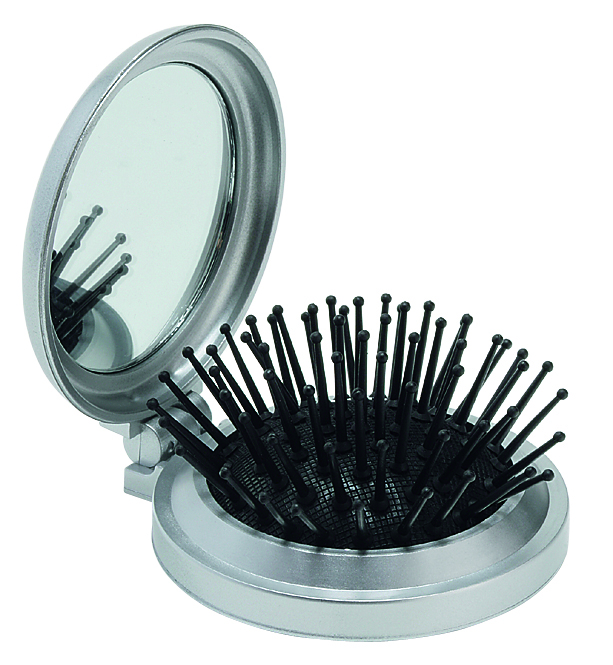 Haarbürste mit Spiegel mit einklappbaren Borsten