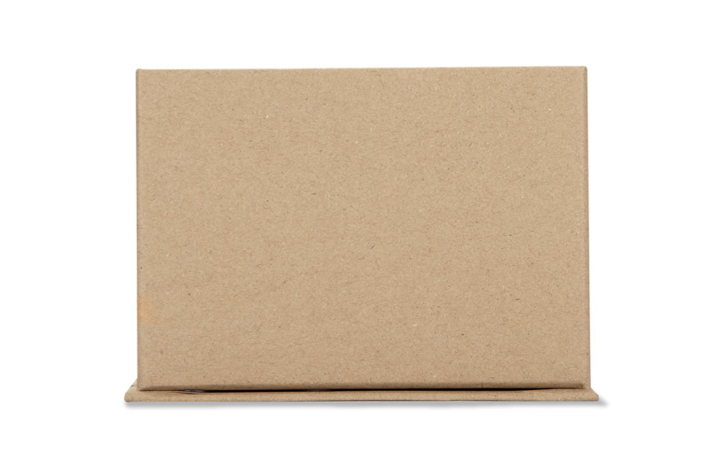 Der MEFO-Behälter besteht aus braunem Papier. Es dient als Schreibtischzubehör. Es bietet Platz für Stifte oder andere ausgewählte Accessoires, Haftnotizen zum Notieren von Notizen und einen Platz für eine Visitenkarte.