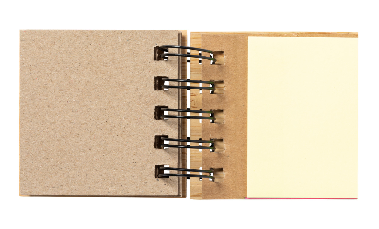 Haftnotiz-Set mit Bambus-Cover mit 75 großen (in 3 verschiedenen Farben) und 125 kleinen Haftnotizen (in 5 verschiedenen Farben).