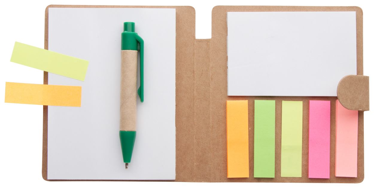 Spinner Spiralnotizbuch mit bunten Haftnotizen