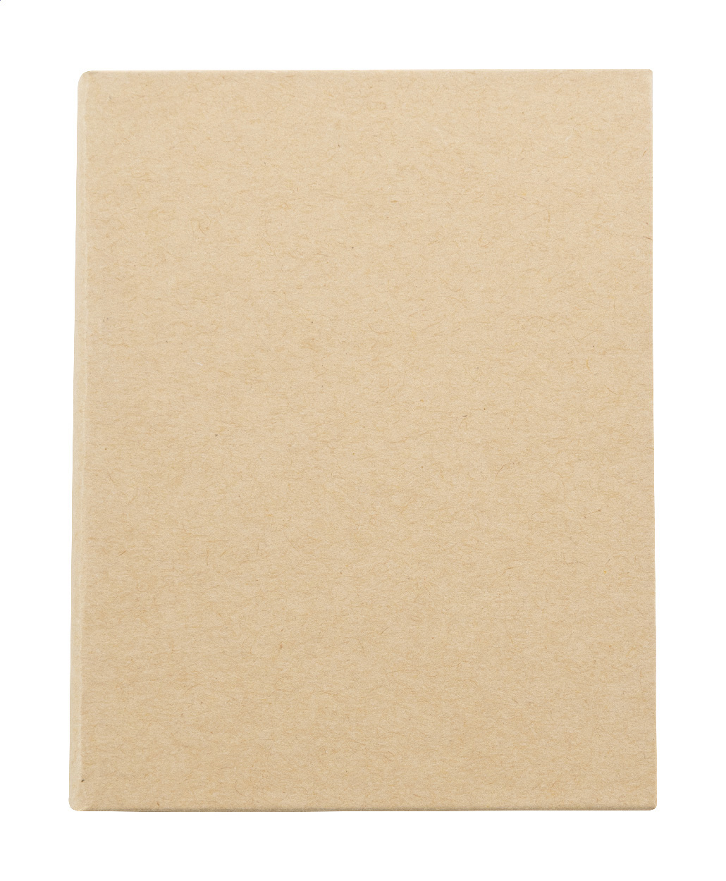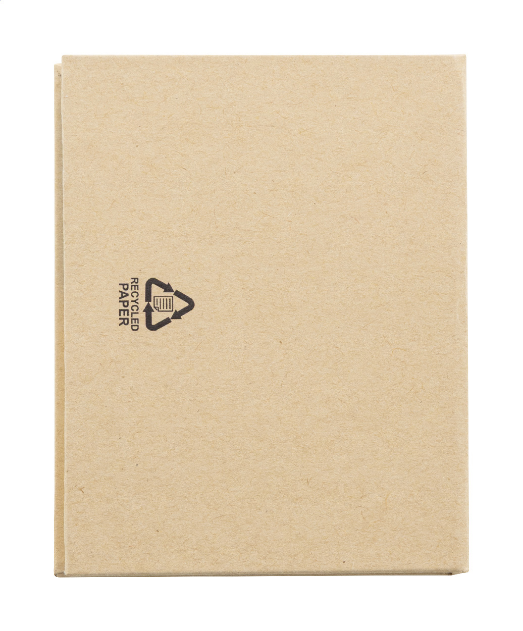 Haftnotizblock aus Recyclingpapier mit 50 großen und 25 mittelgroßen gelben Notizzetteln und 125 Seitenmarkierungen (in 5 Farben).