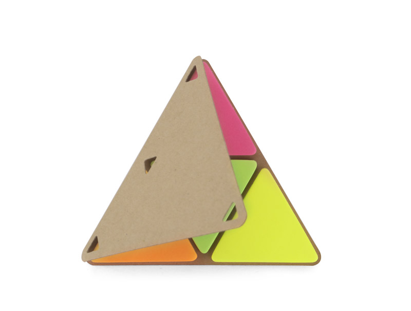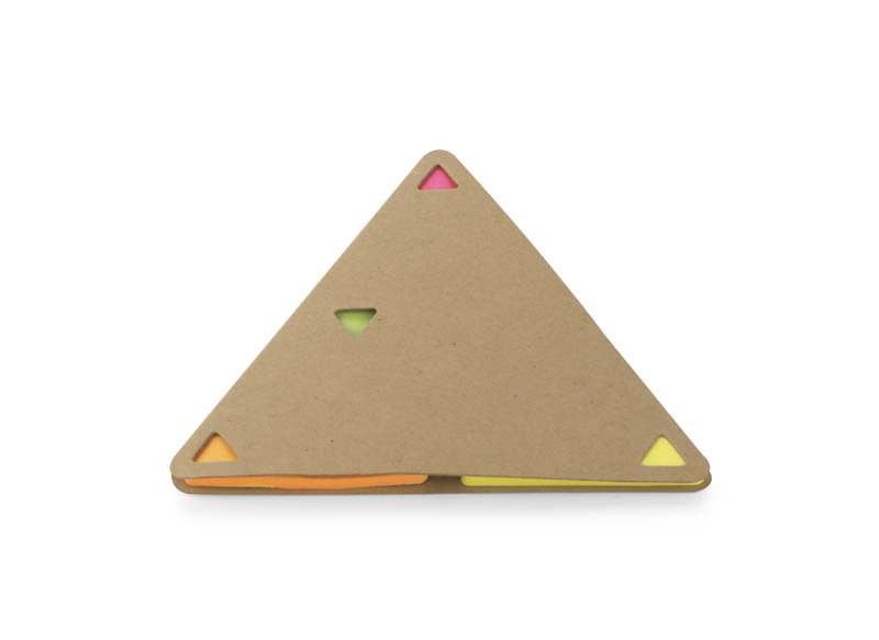 Haftnotizen PEL in Form eines Dreiecks mit umweltfreundlichem Papierumschlag. Im Inneren befinden sich 25 Blätter in 4 Farben: Orange, Pink, Grün, Gelb.