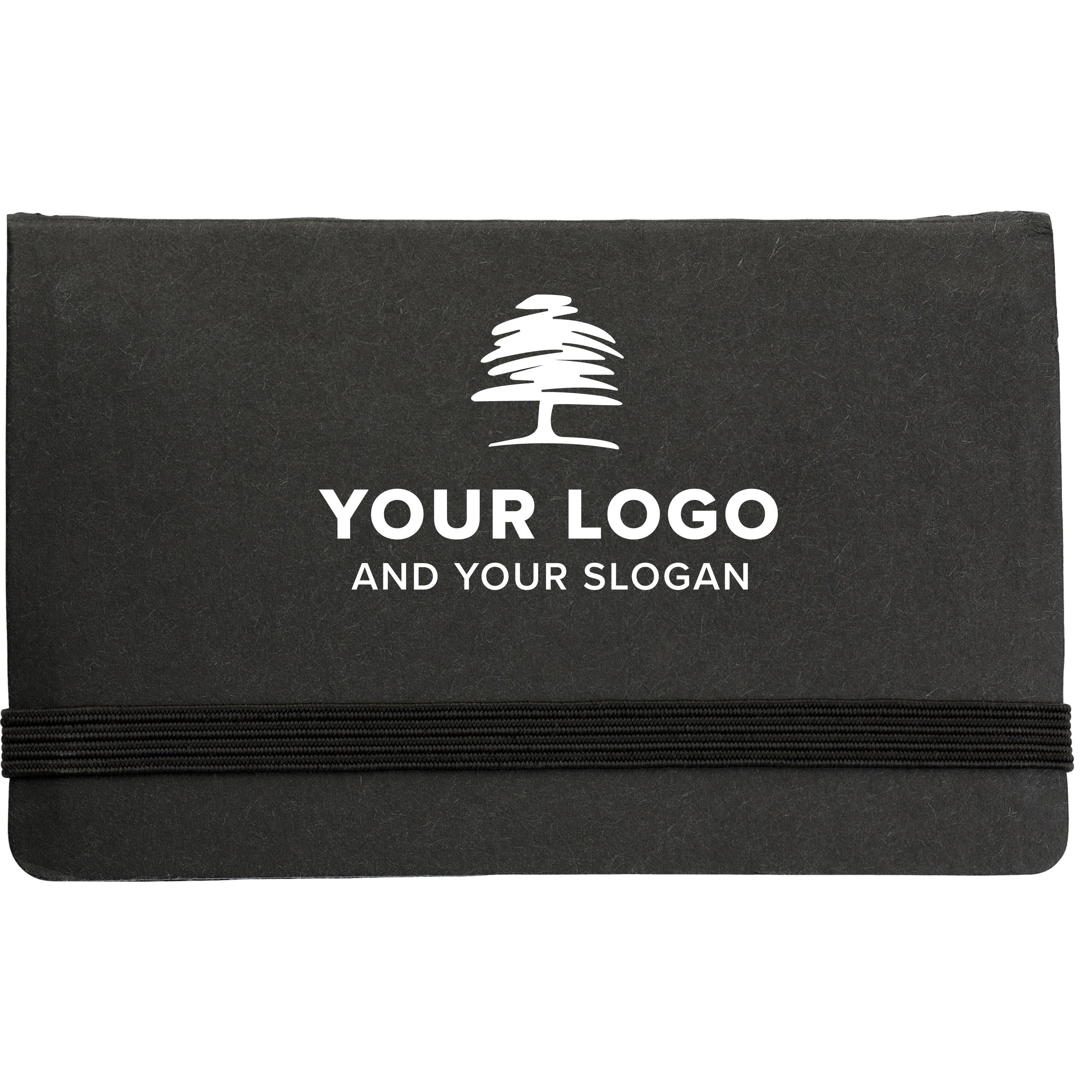 Haftnotizen aus Karton, mit Visitenkarten-Einsteckfach, 25 Haftnotizstreifen in 5 Farben und Haftnotizzettel, inklusive Verschlussband.