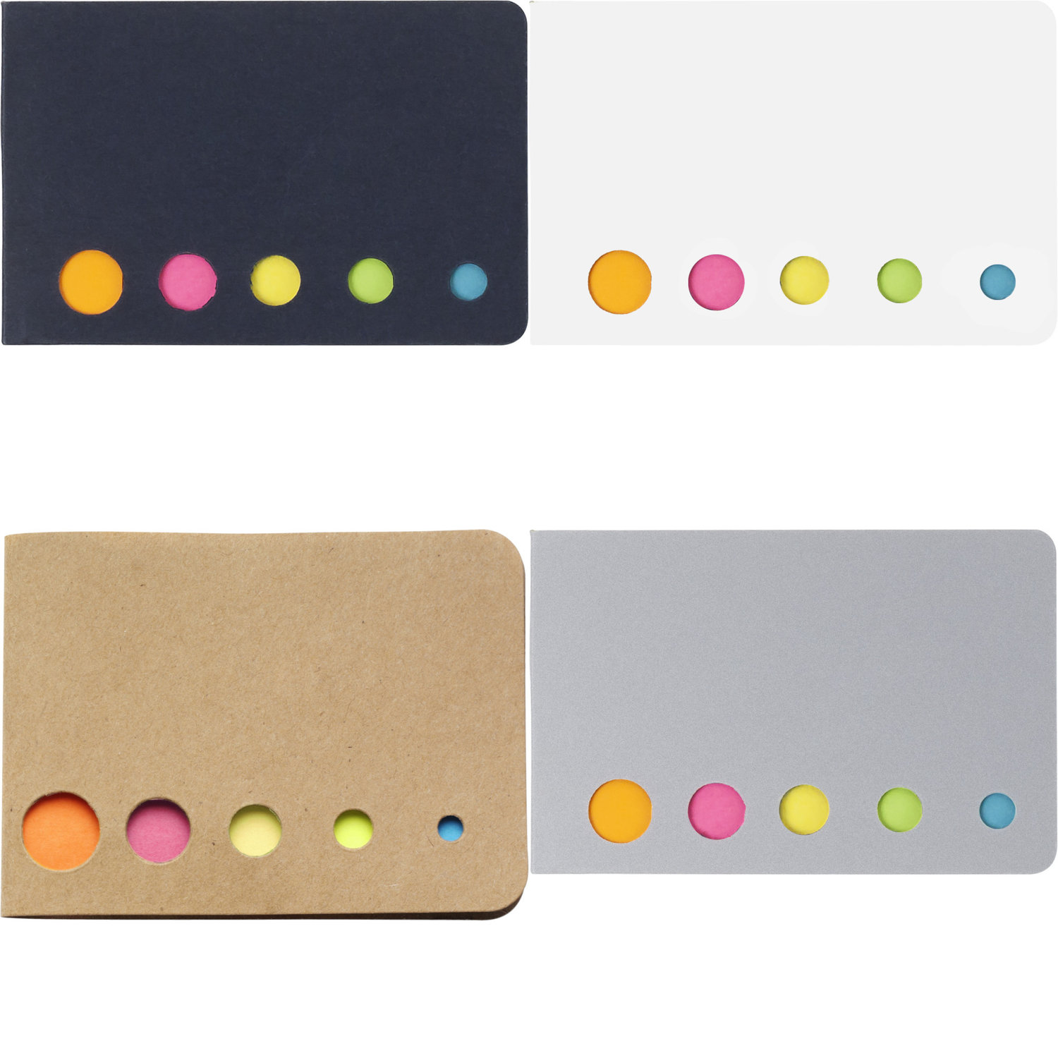 Haftnotizen-Set mit Karton-Umschlag und 5 x 20 Haftnotizen. Deckblatt: 300g / m², klebrig: 75g / m².