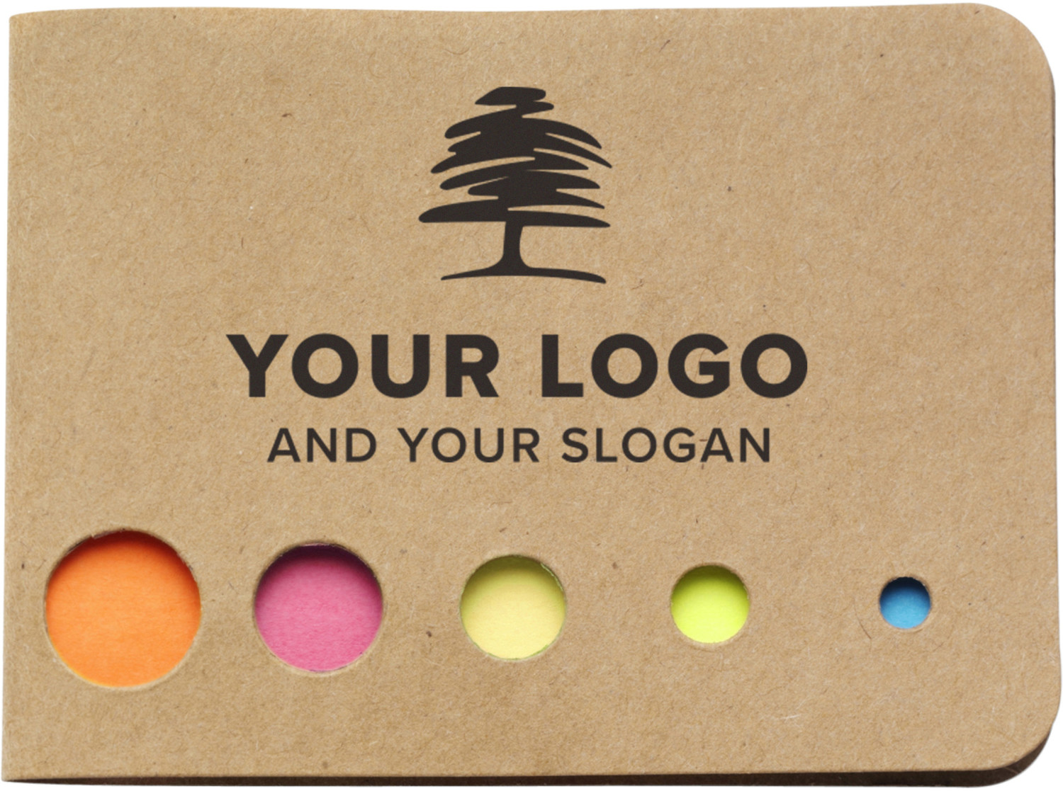Haftnotizen-Set mit Karton-Umschlag und 5 x 20 Haftnotizen. Deckblatt: 300g / m², klebrig: 75g / m².