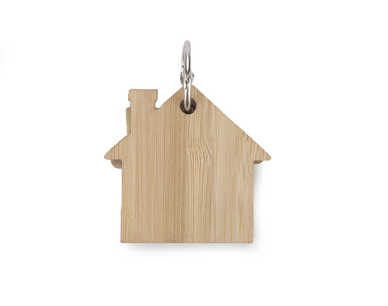 Haftnotizen mit einem Schlüsselanhänger HOMA in Form eines Hauses, das den Benutzer lange begleiten wird. Nachdem die Zettel aufgebraucht sind, dienen die Bambusstücke weiterhin als Schlüsselanhänger.