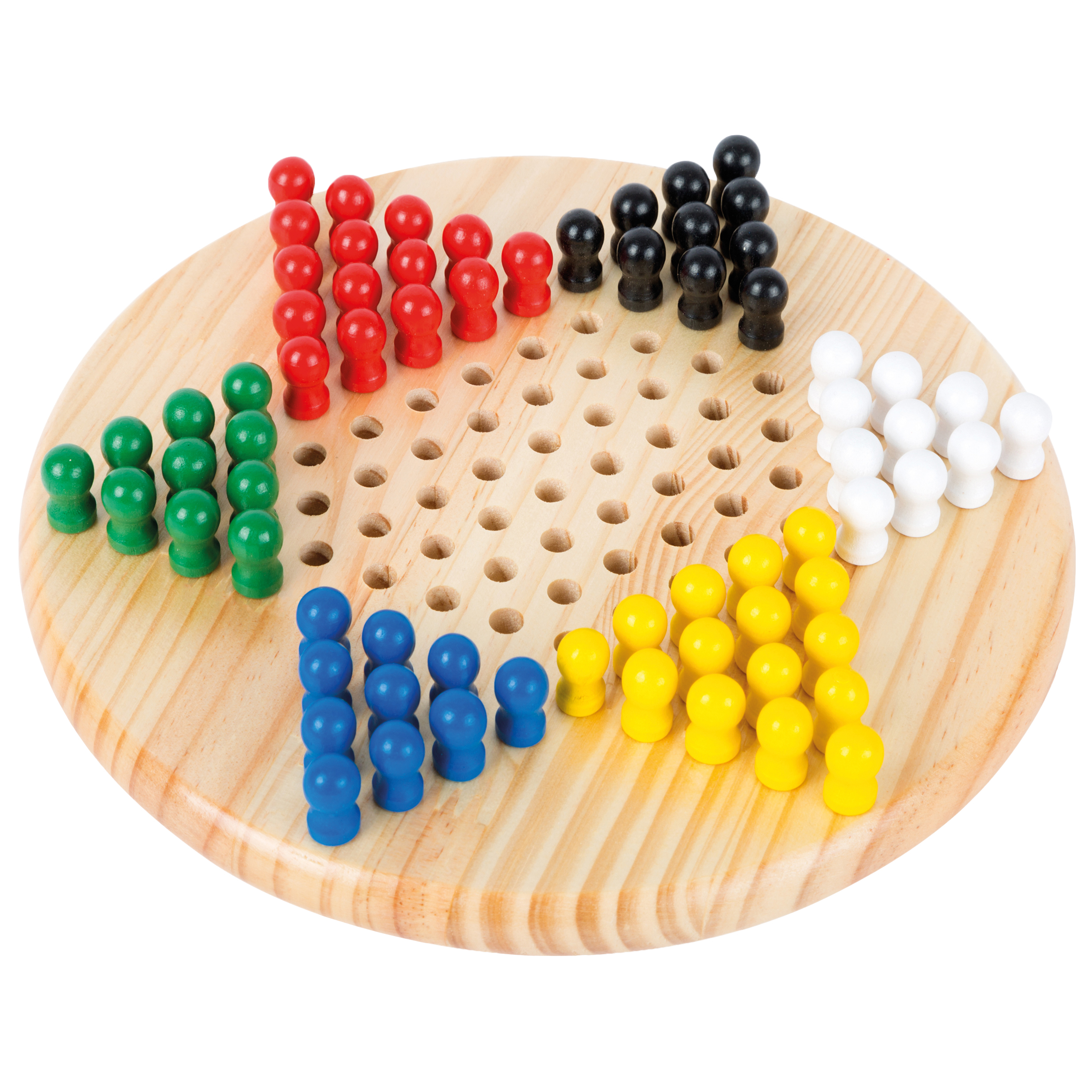 Ein unterhaltsames und lehrreiches Steckspiel ist dieses Sternhalma, bei dem die eigenen Figuren so viele gegnerische wie möglich überspringen und diese bei deren Sprüngen behindern sollen. Brett und Figuren sind aus massivem Holz gearbeitet. Für 2-6 Spieler. Höhe: ca. 4cm, Durchm. ca. 22cm.