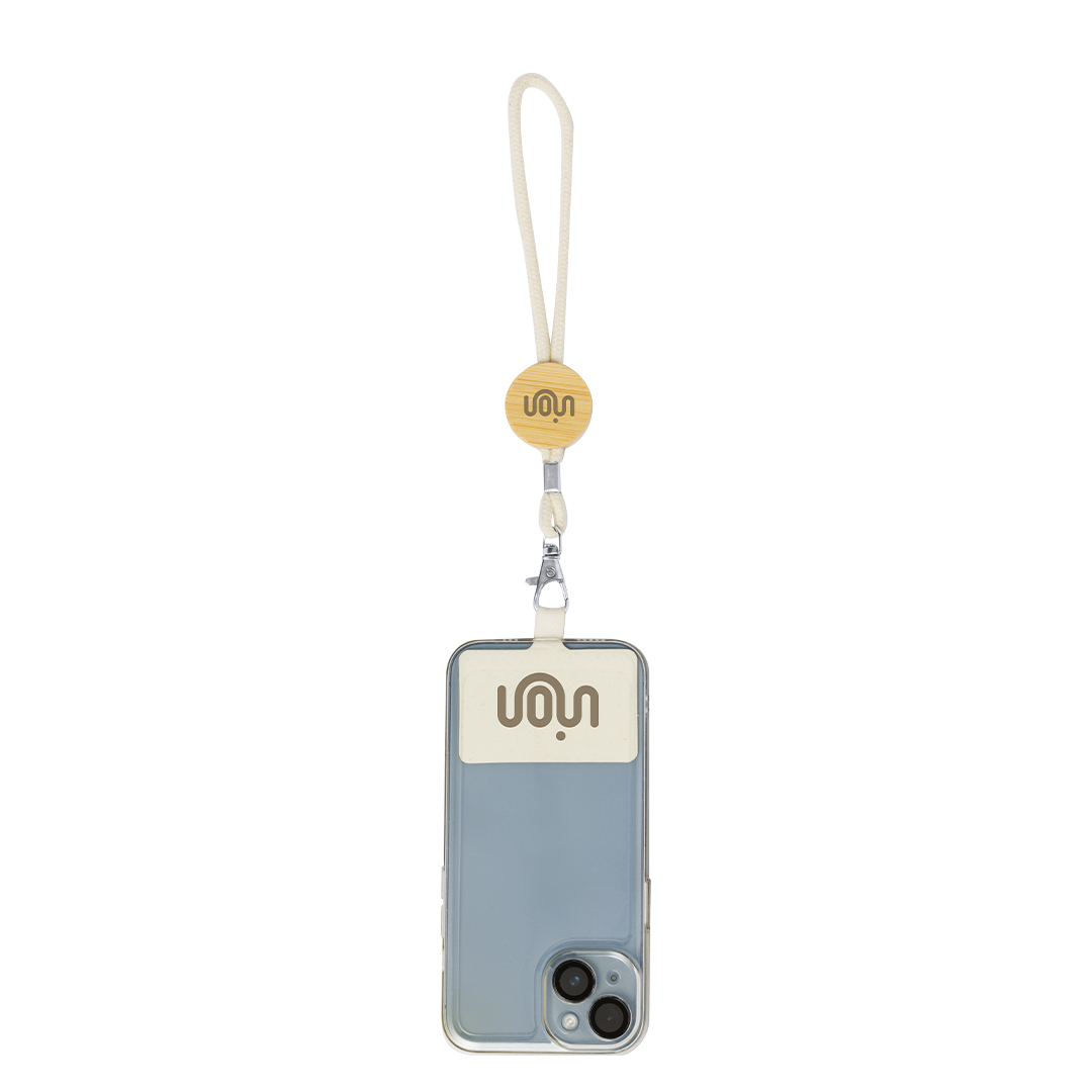 Originelles Armband aus weicher Baumwolle, mit mobiler Halterfunktion und anpassbar an alle Arten von Handgelenken. Mit Tragezubehör zum Platzieren zwischen dem Gehäuse und dem Smartphone. Bambus-Mittelstück zur Personalisierung, speziell für die Lasergravur. Einzeln in einer Recyclingpapiertüte präsentiert. Materialien wie Bambus fördern die Verwendung natürlicher Rohstoffe und reduzieren die Schadstoffemissionen. Es stammt von einer sehr widerstandsfähigen und vielseitigen Pflanze mit schnellem Wachstum und Regeneration, was es zu einer ausgezeichneten Alternative zu traditionellem Holz macht.