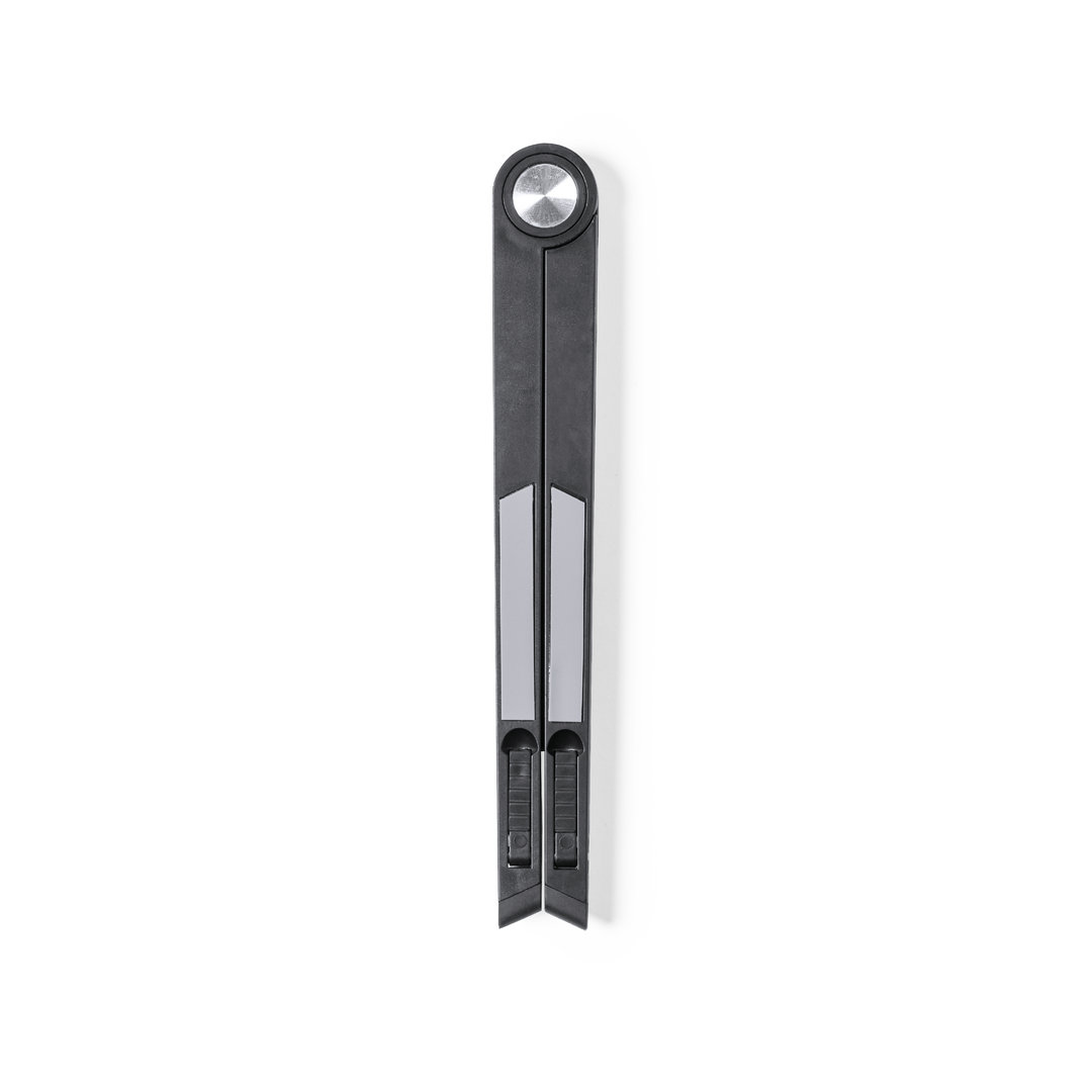 Innovativer Klapphalter für Mobilgeräte und Laptops bis 13 Zoll aus strapazierfähigem ABS-Material. Mit zwei Betrachtungspositionen und kleinem Faltmaß für einfachen Transport.