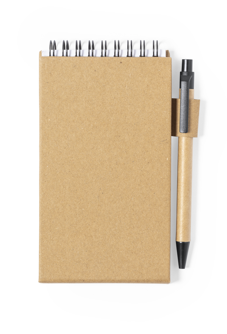 30 Blätter Notizblock. 25 Haftnotizen 7,5 x 7,5 cm. 125 Mini Haftnotizen 1,2 x 4,5 cm. Reclycling Pappe Kugelschreiber Inklusive