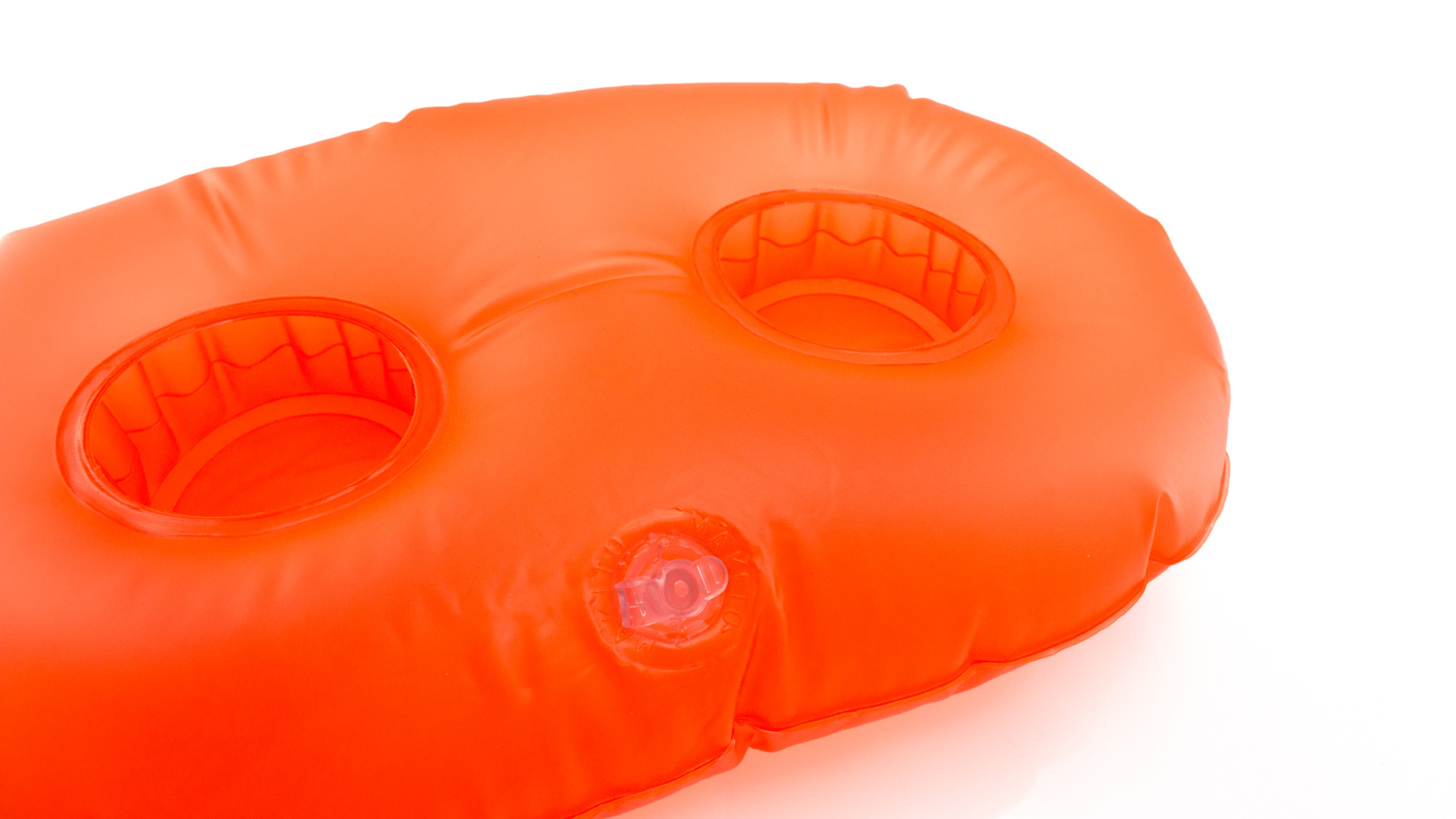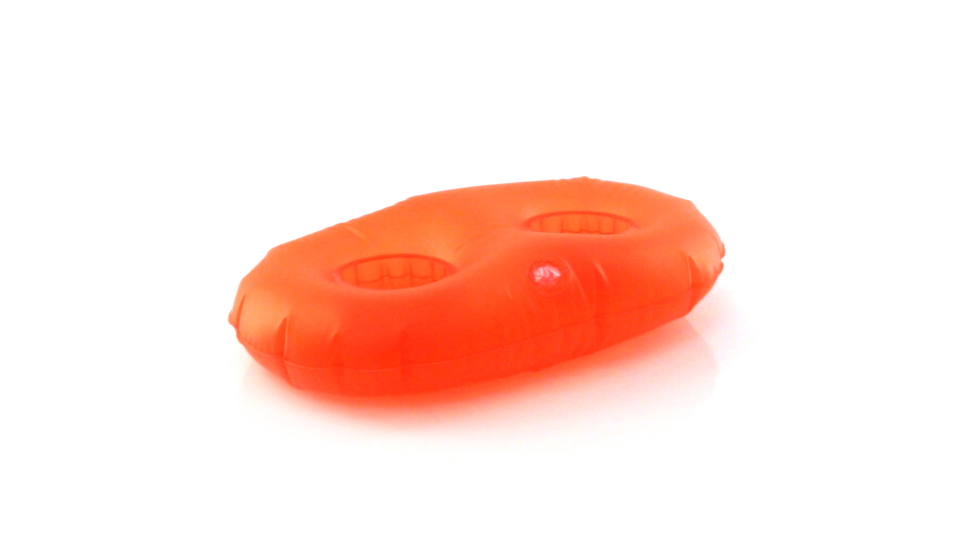 Aufblasbarer Getränkehalter aus robustem PVC in lebendigen Farben. Geeignet für 2 Dosen mit 330 ml Fassungsvermögen.