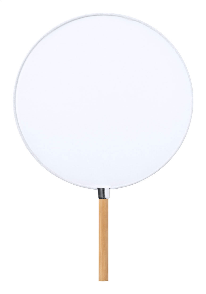 Handfächer aus Polyester mit Bambusgriff.
