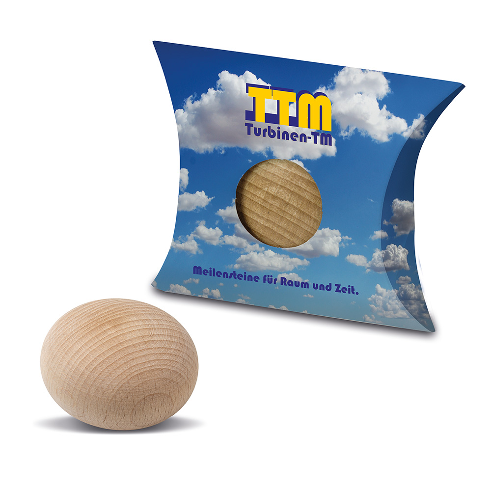 Der Handschmeichler aus unbehandeltem Holz verspricht Ruhe, Entspannung und ein angenehmes Gefühl. Mit seiner glatten Oberfläche, den weichen Kanten und seiner interessanten Form bietet er spielerisch ein angenehmes und zugleich (ent) spannendes Tasterlebnis. Eine optionale Lasergravur sorgt für bleibende Werbung. Geliefert im Organzasäckchen mit einem angebrachten Hangtag, welcher auf der Vorder- und Rückseite individuell gestaltet werden kann.