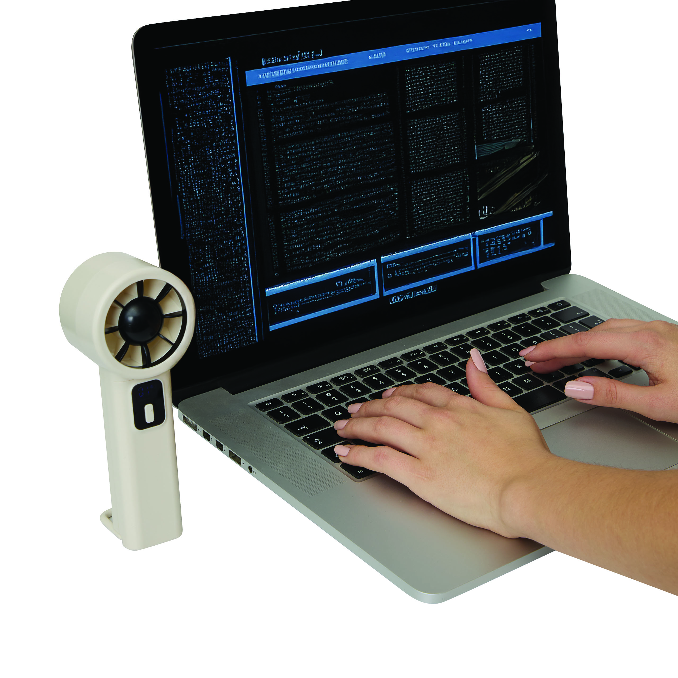 Handventilator SILENTJETSTREAM: 6 Geschwindigkeitsstufen, Stufen zusätzlich manuell einstellbar, mit Ladestand- und Geschwindigkeitsanzeige, mit Tragegriff / Ständer, durch Ständer als Tisch-Ventilator nutzbar, leistungsstarker Lithium-Akku, Kapazität: 1.200 mAh, inkl. USB-Ladekabel mit USB Typ C Stecker (Länge ca. 19 cm), in Box
