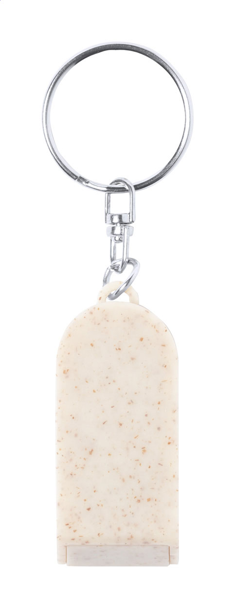 Handyhalter-Ring aus ökologischer Weizenstroh-Kunststoff mit Bildschirmreiniger und Schlüsselring aus Metall.
