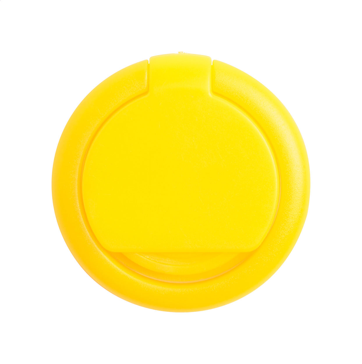 Runder Handyhalter aus Kunststoff mit selbstklebender Rückseite und Einkaufswagen-Chip.