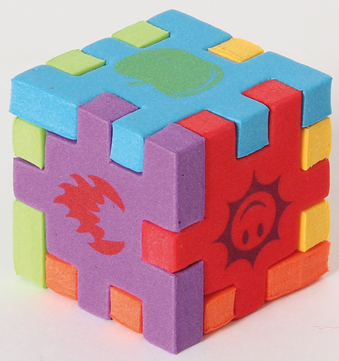 Die kniffligen 2-D-Legepuzzles sind in 3-D imposante Puzzlewürfel. Aus federleichtem Schaumstoff sind sie ein hochwertiges pädagogisches Spielzeug, das kognitive Entwicklung stimuliert, Motorik verfeinert und räumliches Denken schärft. Auch für Erwachsene sind die Würfelpuzzles kurzweilige Spiele von höchster Anforderung. Die einfache Version ist schon für Kinder von 3 - 7 Jahren geeignet. Die aufgedruckten Symbole geben zusätzliche Reize. Maße 2D: 120 x 90 x 8 mm, 3D: 40 x 40 x 40 mm. Im 6er Pack erhalten Sie 6 Würfel zum Preis von 5!