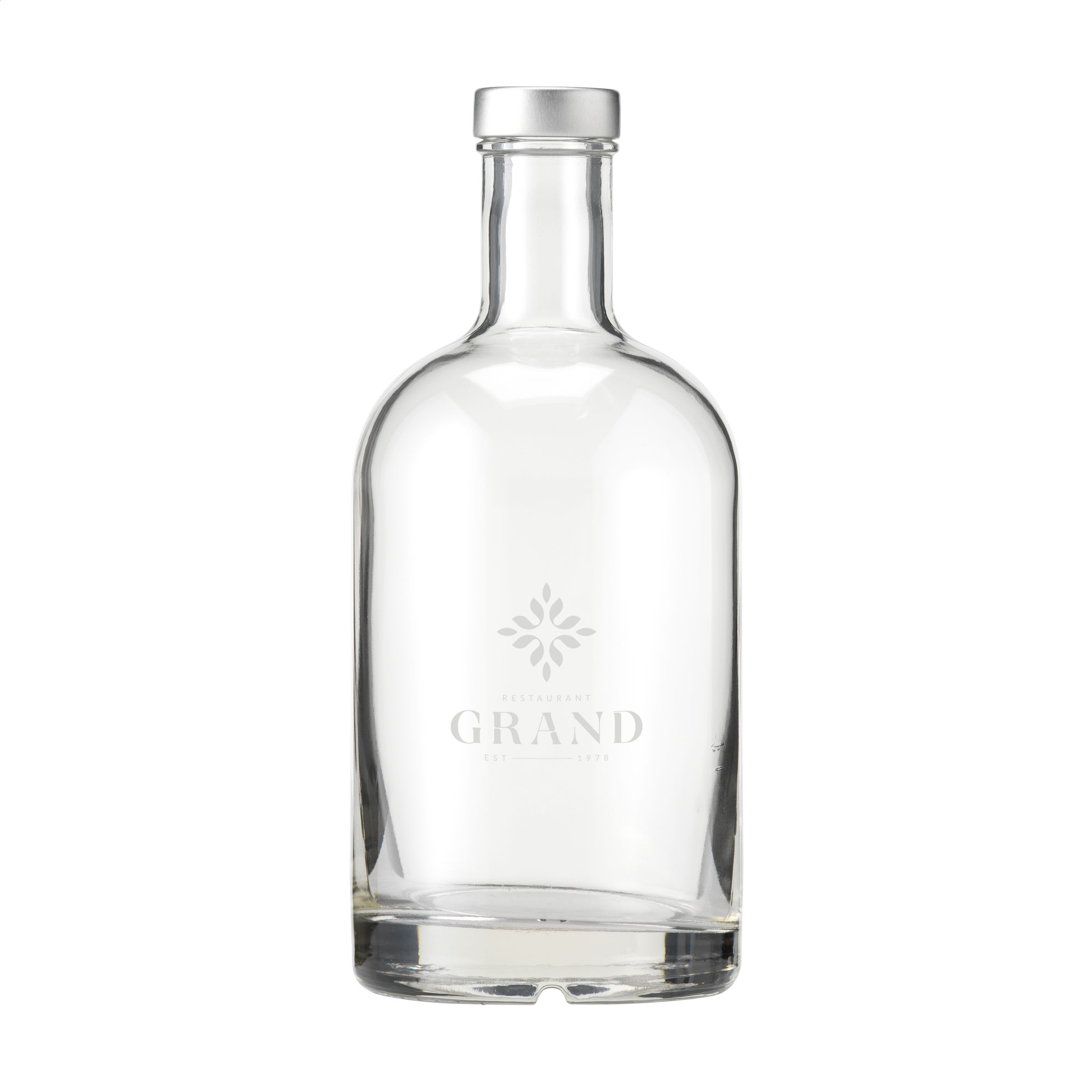 Stilvolle Glaswasserflasche mit Schraubverschluss und stabilem Boden. Das zeitlose Design macht diese Flasche ideal als Tischflasche und besonders geeignet für den Einsatz in der Gastronomie. Die Flasche ist spülmaschinengeeignet, der Verschluss nicht. Um den Aufdruck zu erhalten, wird Handwäsche empfohlen. Fassungsvermögen 700 ml.