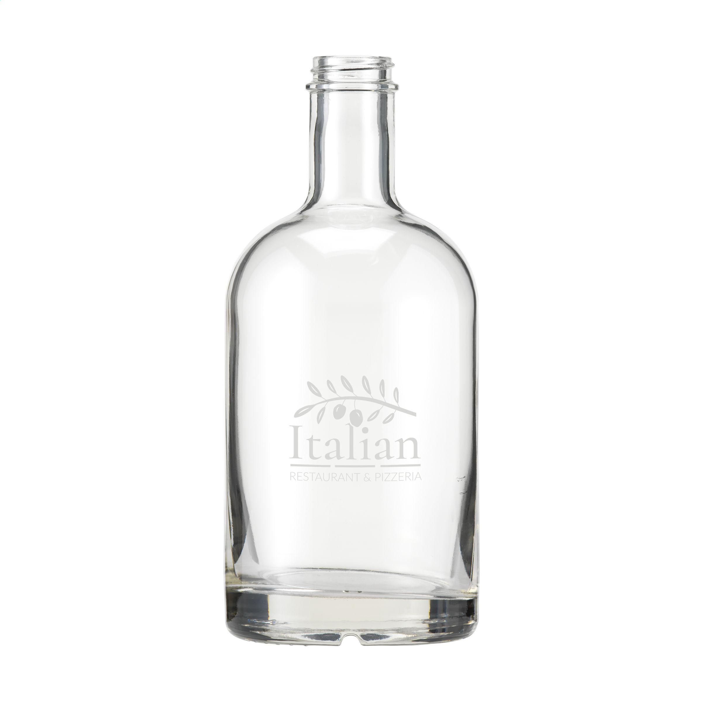 Stilvolle Glaswasserflasche mit Schraubverschluss und stabilem Boden. Das zeitlose Design macht diese Flasche ideal als Tischflasche und besonders geeignet für den Einsatz in der Gastronomie. Die Flasche ist spülmaschinengeeignet, der Verschluss nicht. Um den Aufdruck zu erhalten, wird Handwäsche empfohlen. Fassungsvermögen 700 ml. Hergestellt in Europa.