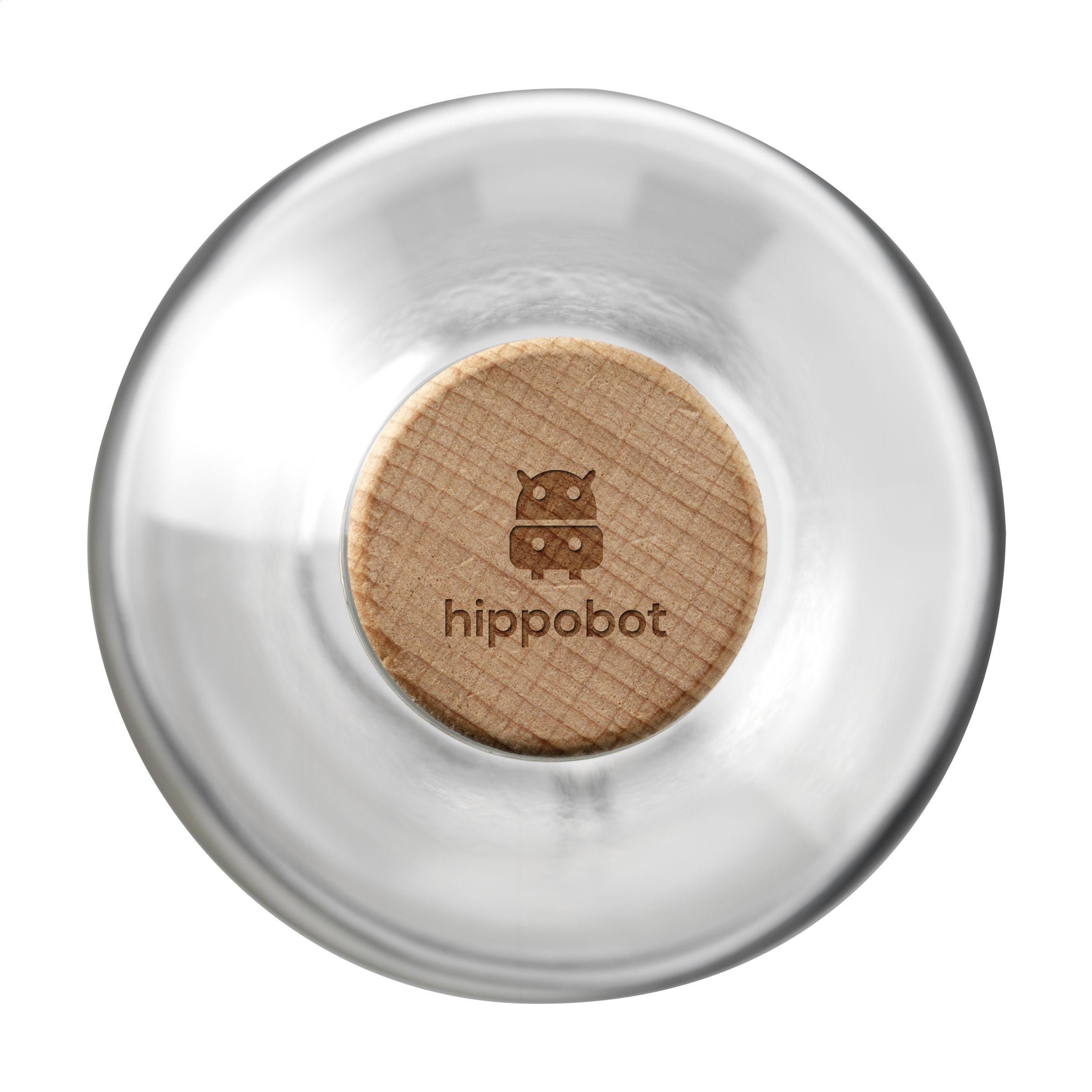 Stilvolle Wasserflasche aus Glas mit Holzkappe, die mit einem Kunststoffkorken und einem stabilen Boden ausgestattet ist. Das zeitlose Design macht diese Flasche ideal als Tischflasche und besonders geeignet für den Einsatz in der Gastronomie. Die Flasche ist spülmaschinengeeignet, der Verschluss mit Korken is nicht spülmaschinengeeignet. Um den Aufdruck zu erhalten, wird Handwäsche empfohlen. Fassungsvermögen 1L. Hergestellt in Europa.