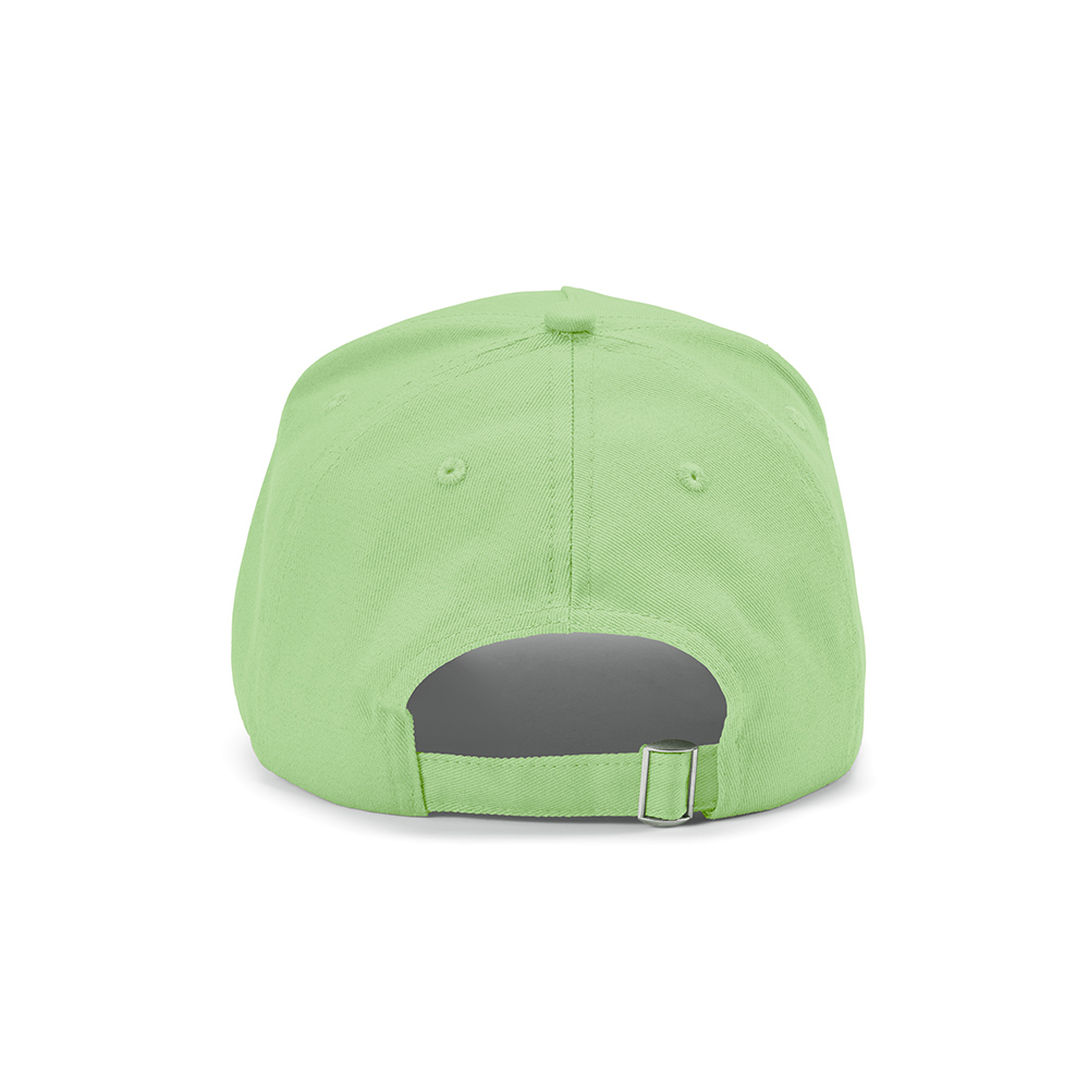 Hendrix 5-Panel Kappe aus 280 g / m² recycelter Baumwolle. Die verstellbare Metallschnalle am Rücken sorgt für eine perfekte Passform. Ihr idealer Begleiter für Sonnenschutz. Erhältlich in 17 Farben und verpackt in einem biologisch abbaubaren Polybeutel.