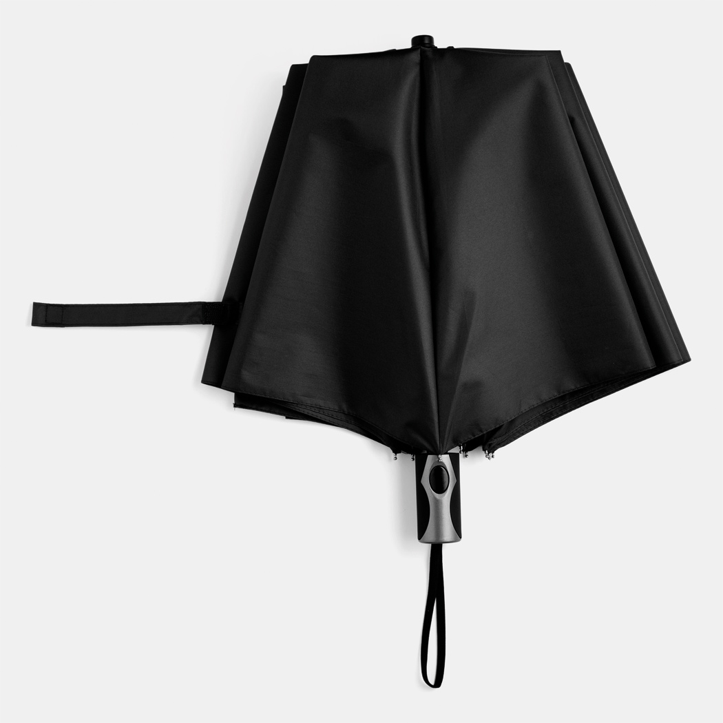 Automatik-Windproof-Herrenfaltschirm MISTER: 2-teiliger Metallstock, Metallspeichen und -tips, Kunststoffgriff mit Handschlaufe, Polyester-Pongee-Bespannung, Schließband mit Klettverschluss