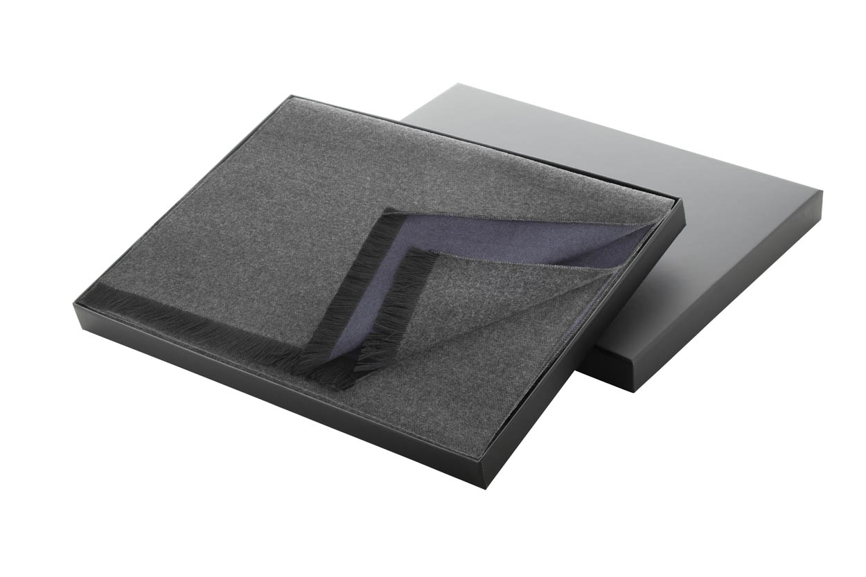 Eleganter Schal für Herren, in schwarzer Geschenkbox. Material: 38 % Polyester / 62 % Viskose-Mischung. Markenprodukt von André Philippe.