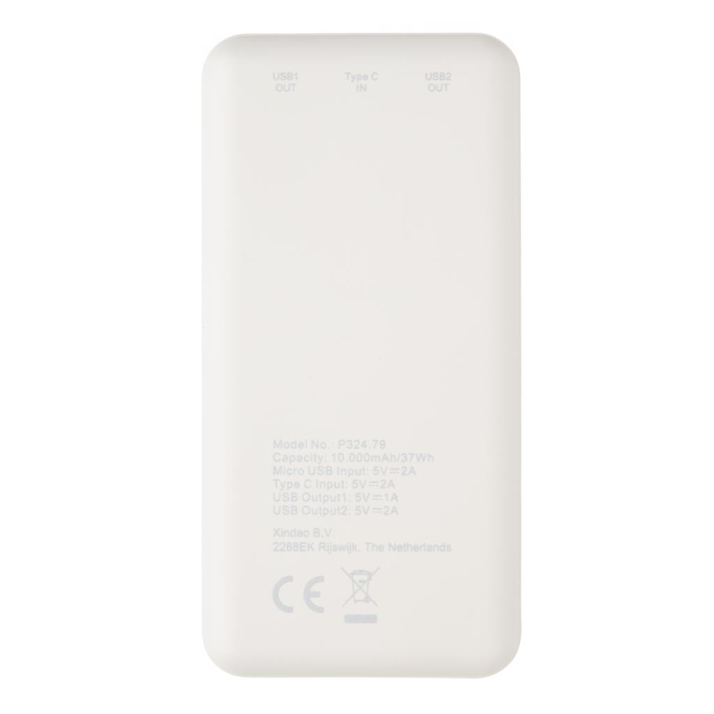 10.000 mAh Powerbank aus leichtem ABS im Taschenformat. Die A-Grade 10.000 mAh Lithium-Polymer Batterie erlaubt es Ihnen bei voller Ladung Ihr Smartphone 4-5 mal aufzuladen. Mit Dual USB-Port. Die LED's zeigen Ihnen den Ladestand der Powerbank an, so dass Sie immer wissen wann es Zeit wird sie wieder zu laden. Input: 5V/2A. Type C Input: 5V/2A.; Output USB 1: 5V/2A.; Output USB 2: 5V/1A