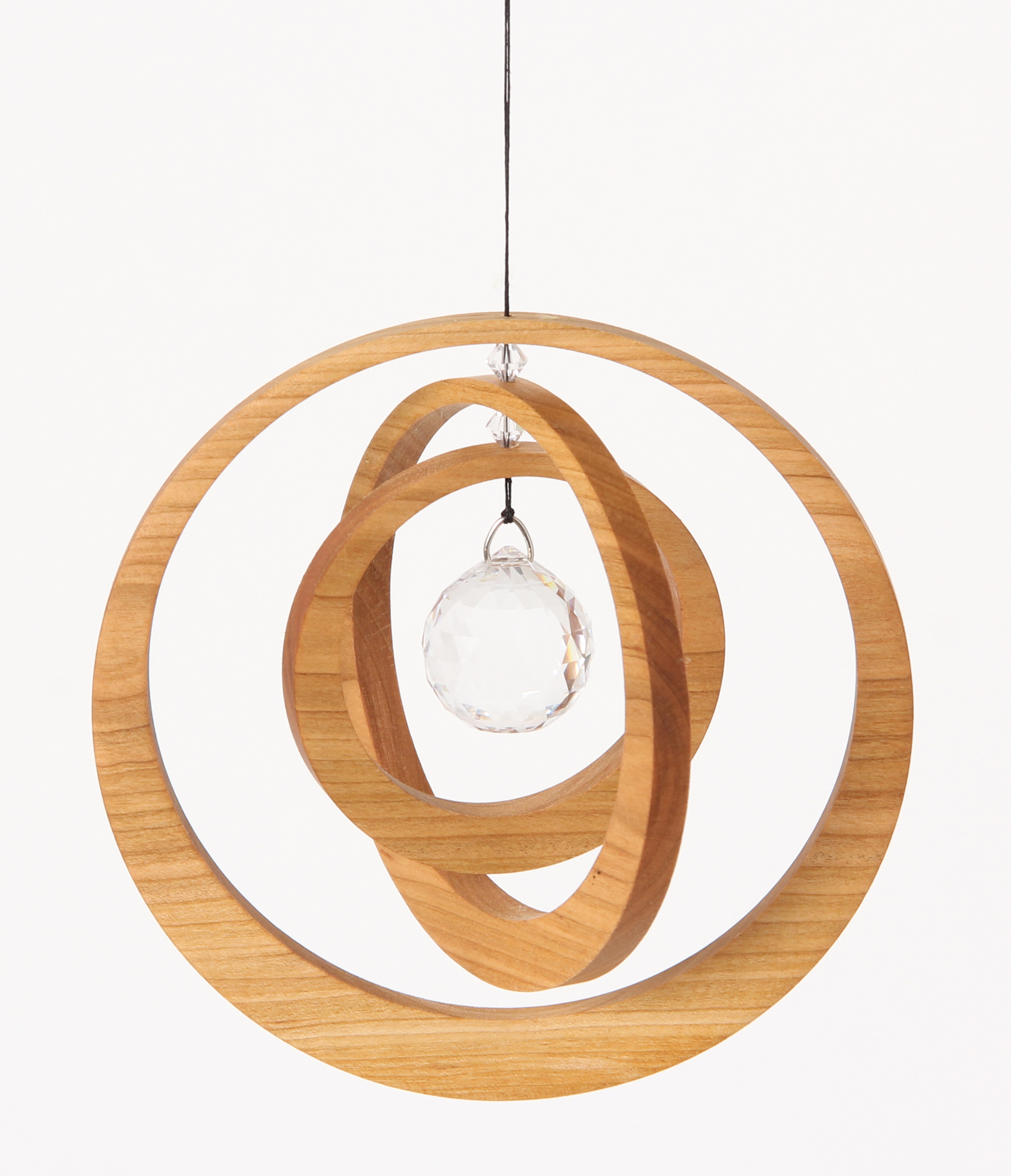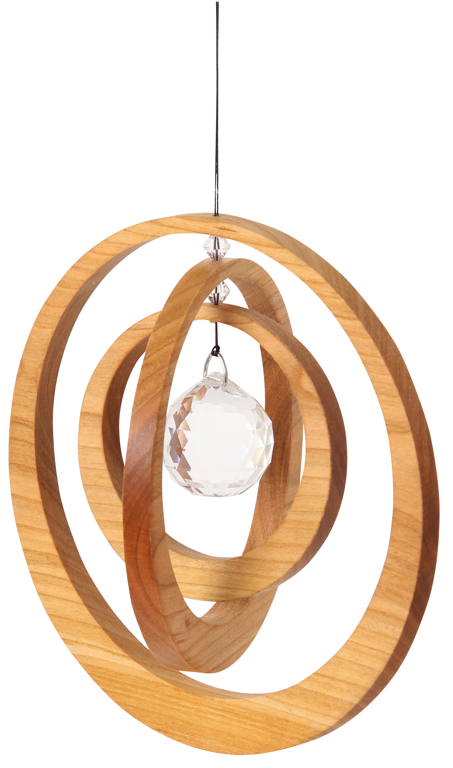 Das dekorative Harmonieobjek ist aus Obstbaum-Hölzern mit viel Liebe zum Detail gefertigt. Sein Energiezentrum ist ein Bleikristall. Das Mobile schenken dem Betrachter positive Energie für inneres Gleichgewicht und Harmonie. Der Kristall bricht einfallendes Sonnenlicht in schillernden Regenbogenfarben.