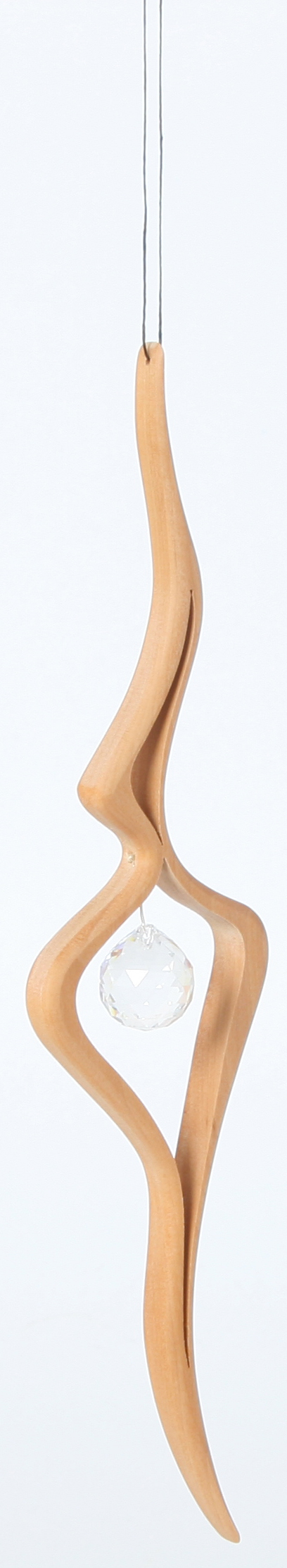 Das dekorative Harmonieobjekt ist aus edlem Obstbaumholz mit viel Liebe zum Detail gefertigt. Sein Energiezentrum ist ein Bleikristall. Das Mobile schenkt dem Betrachter positive Energie für inneres Gleichgewicht und Harmonie. Der Kristall reflektiert einfallendes Sonnenlicht in schillernden Regenbogenfarben.