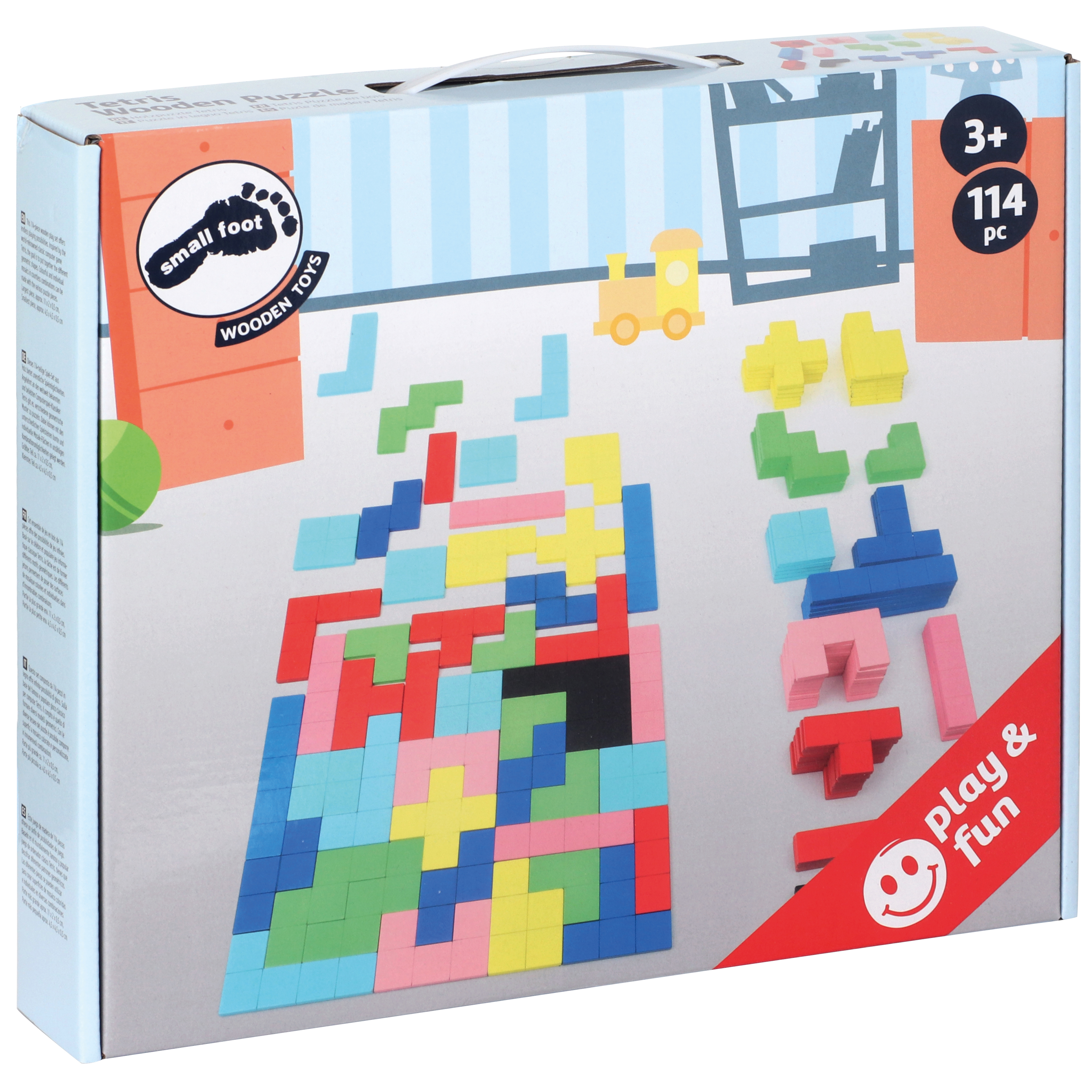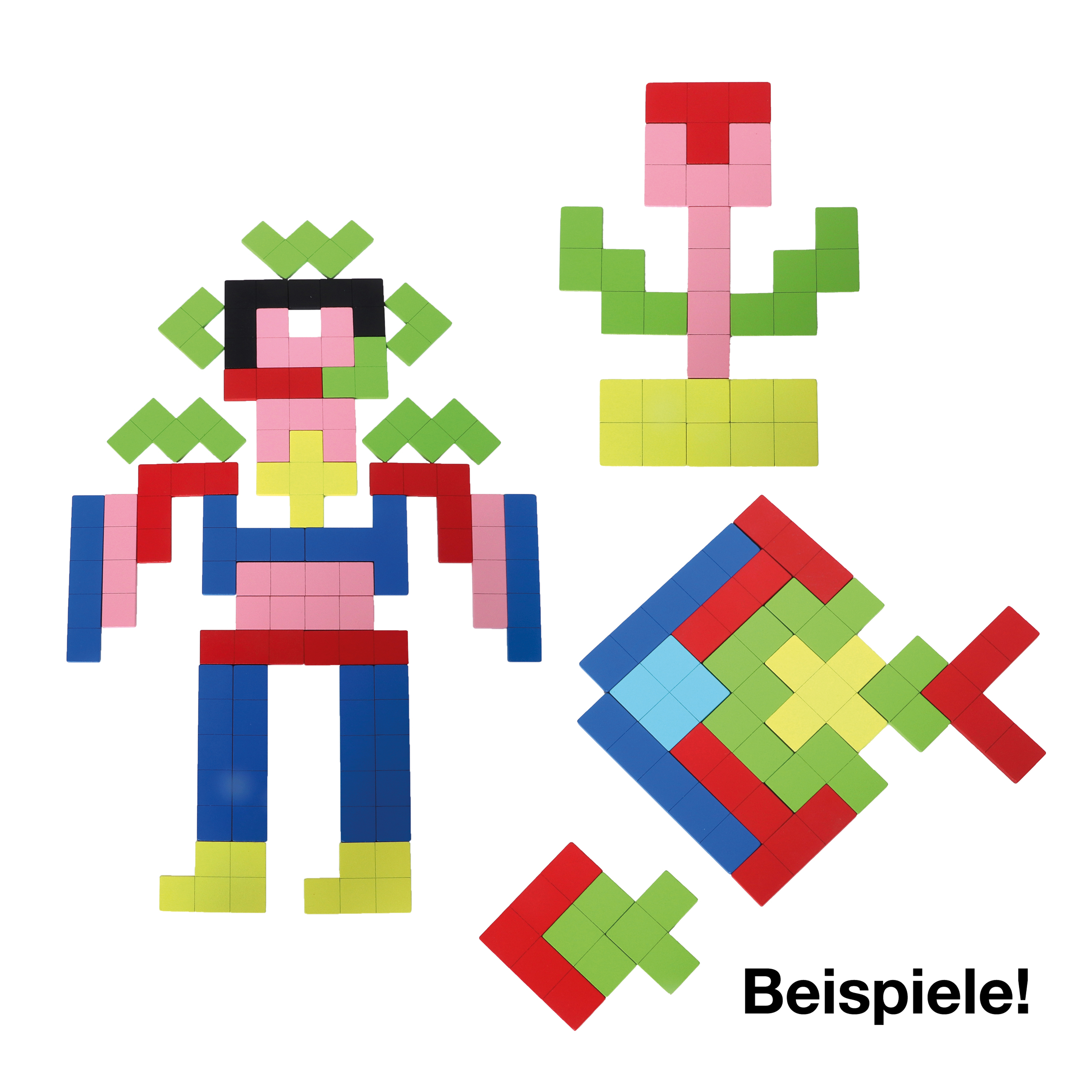 Dieses 114-teilige Spiel-Set aus Holz bietet unendliche Spielmöglichkeiten. Es gilt, verschiedene geometrische Muster zu puzzeln. Dabei können mit den unterschiedlichen Spielsteinen bunte und individuelle Mosaik-Flächen in unzähligen Kombinationsmöglichkeiten gelegt werden. Größtes Teil: ca. 11 x 2x0,5cm Kleinstes Teil: ca. 4,5 x 4,5 x 0,5cm