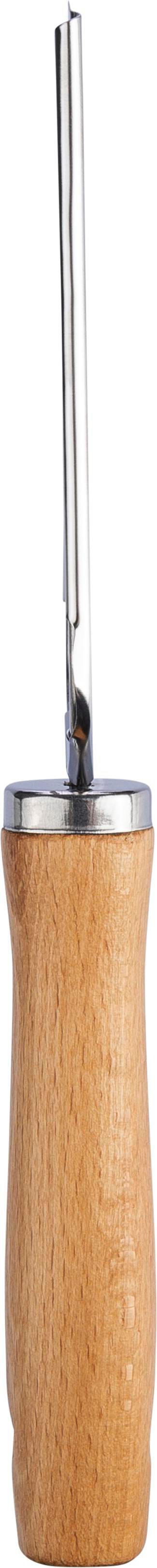 Holzreibe mit Edelstahlteilen (Reibe 430 und Halter 410). Mit Loch im Griff zum Aufhängen. Größe: 24,5 x 5,8 cm. Großverpackung mit Seidenpapier um den Metallteil.