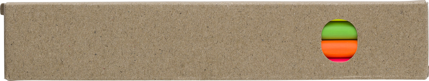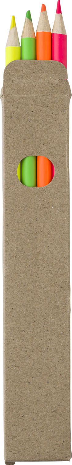 Holzstift-Set mit 4 Farbstiften (gelb, orange, rosa und grün) in Kartonbox.