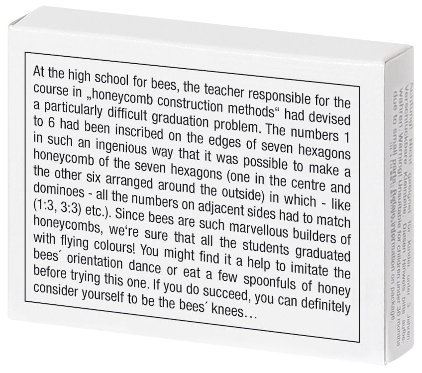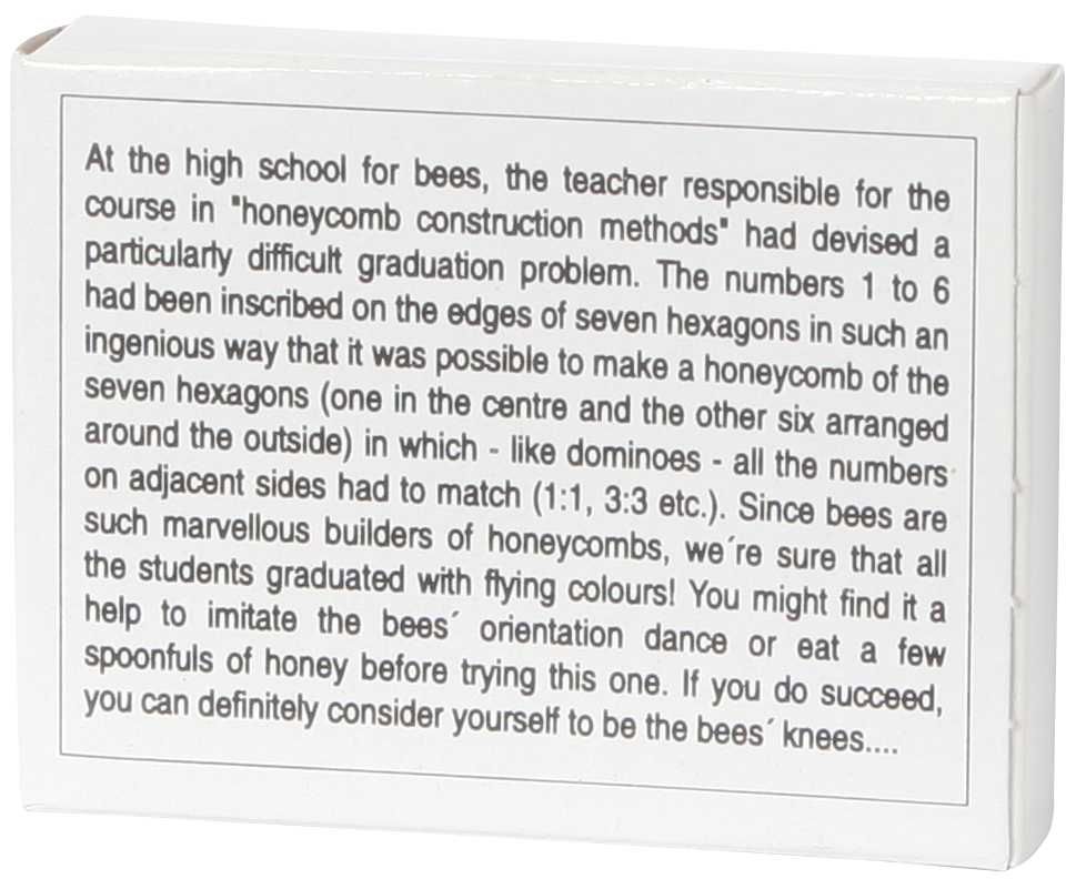 Die Prüfung einer Biene im Fach Wabenbau hatte es in sich! Sieben Waben waren so anzuordnen, dass alle aneinanderstoßenden Zahlen gleich sind. Gar nicht so einfach - probieren Sie selbst!