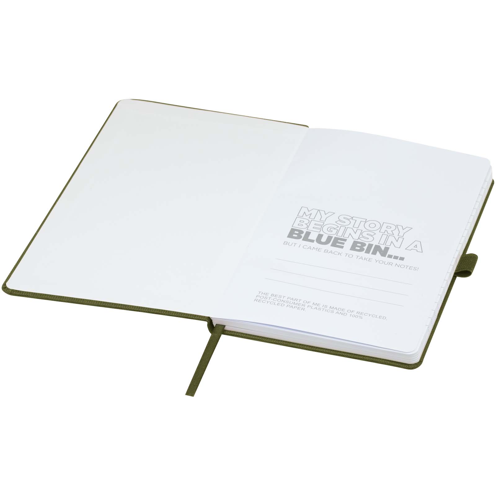A5 Notizbuch mit einem Cover aus RPET. Mit 80 Blatt, 70 g / m² recyceltem Papier, liniert, und mit Stiftschlaufe und Leseband. Kombinierbar mit dem 107757 Honua RPET-Kugelschreiber.