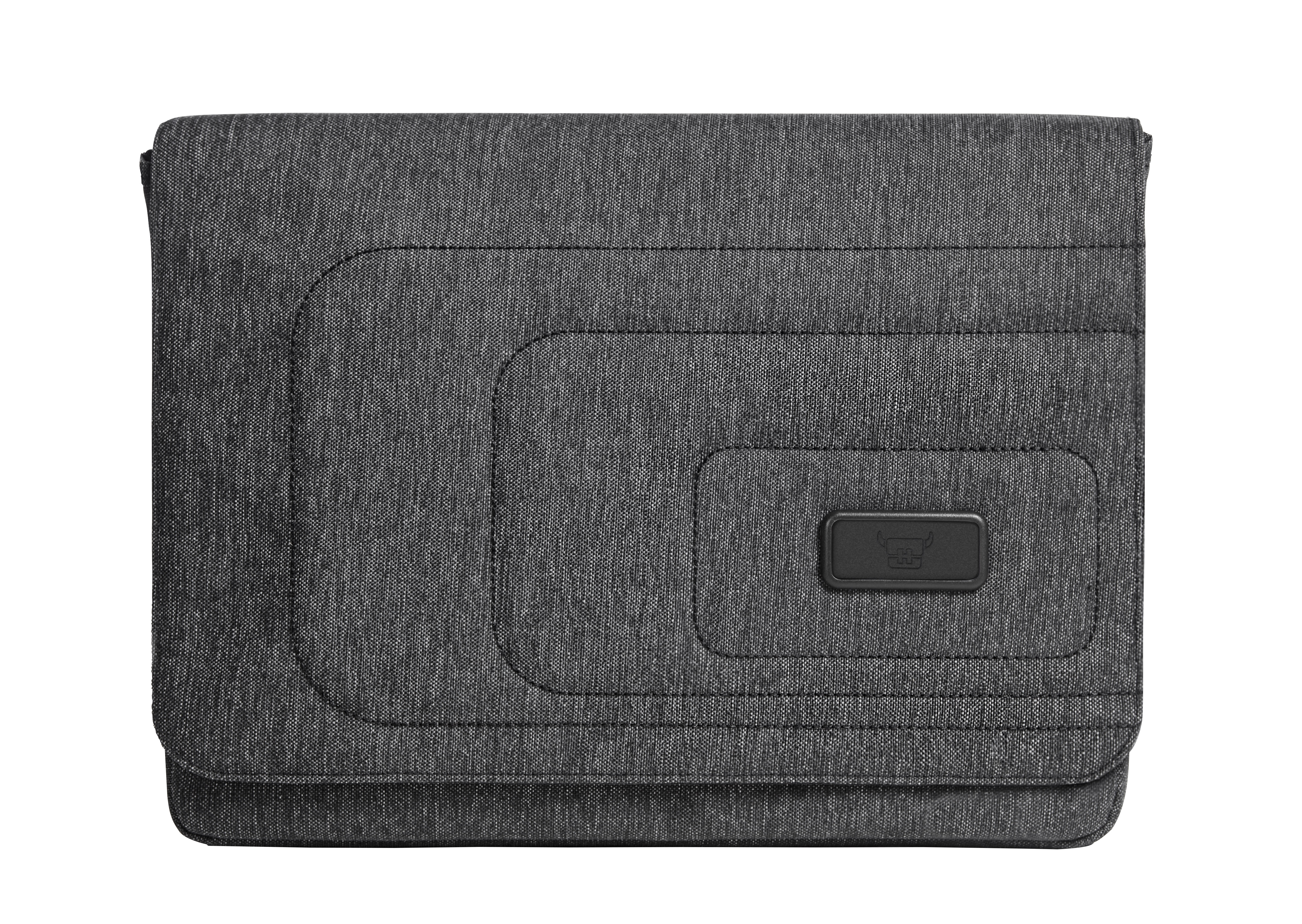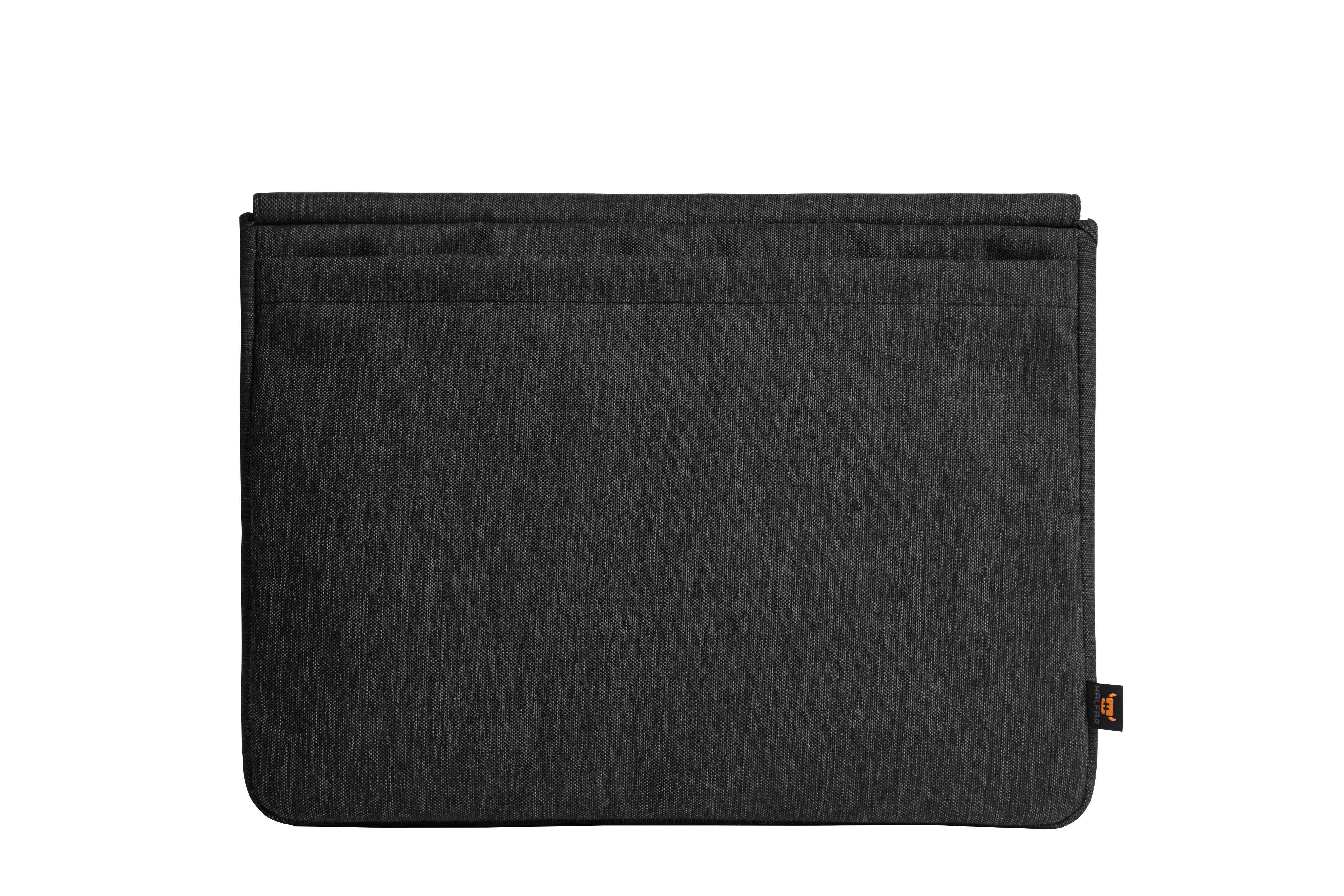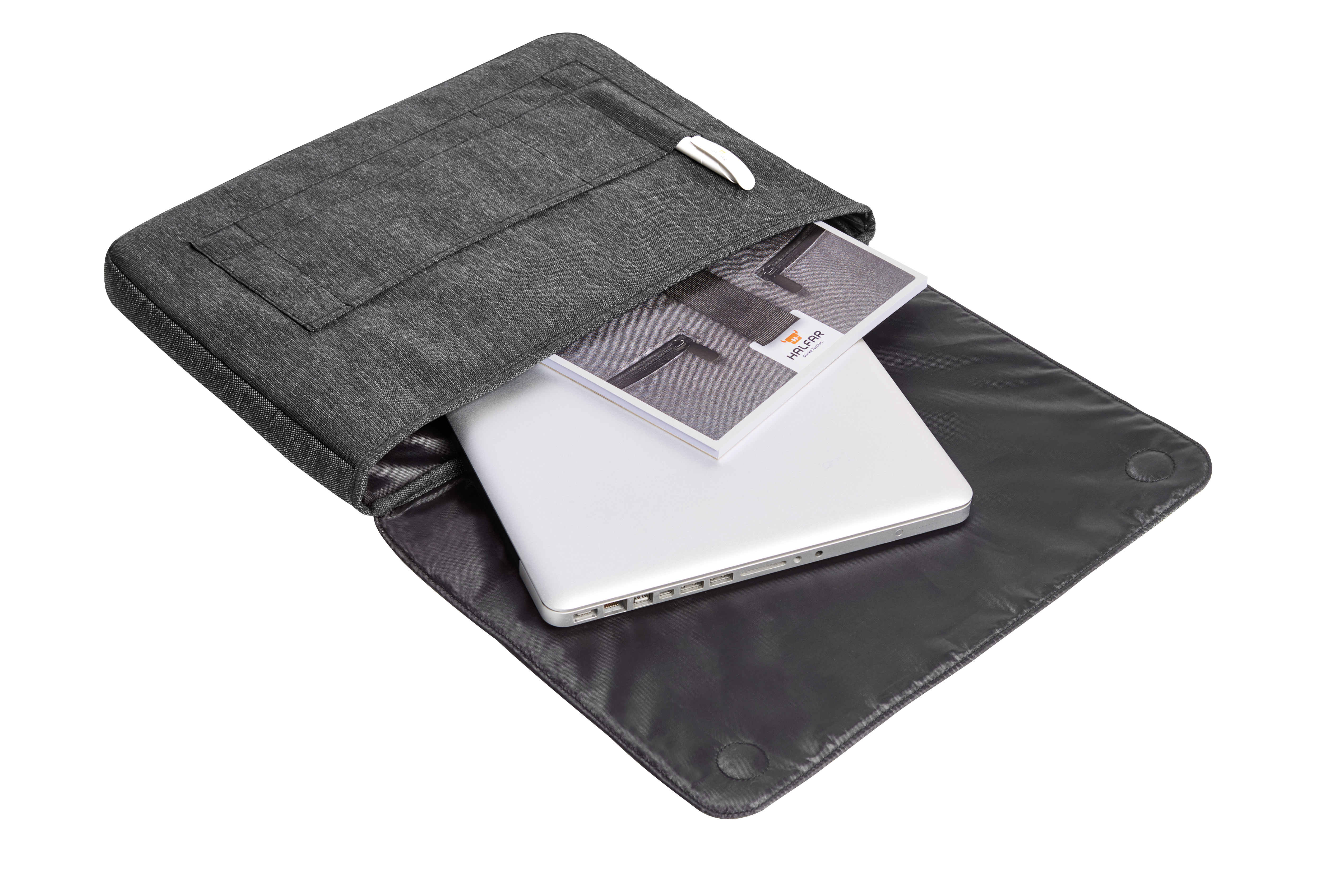 Gepolsterte wertige Hülle mit aufwändig gesteppter Front und HFL® Träger für Ihr Logo; geeignet für Notebook und DIN A4-Notizbücher; auf der Front flaches Einsteckfach mit Stiftschlaufe; rückseitig großes Reißverschluss-Fach geeignet für DIN A4 Unterlagen; Magnetverschluss