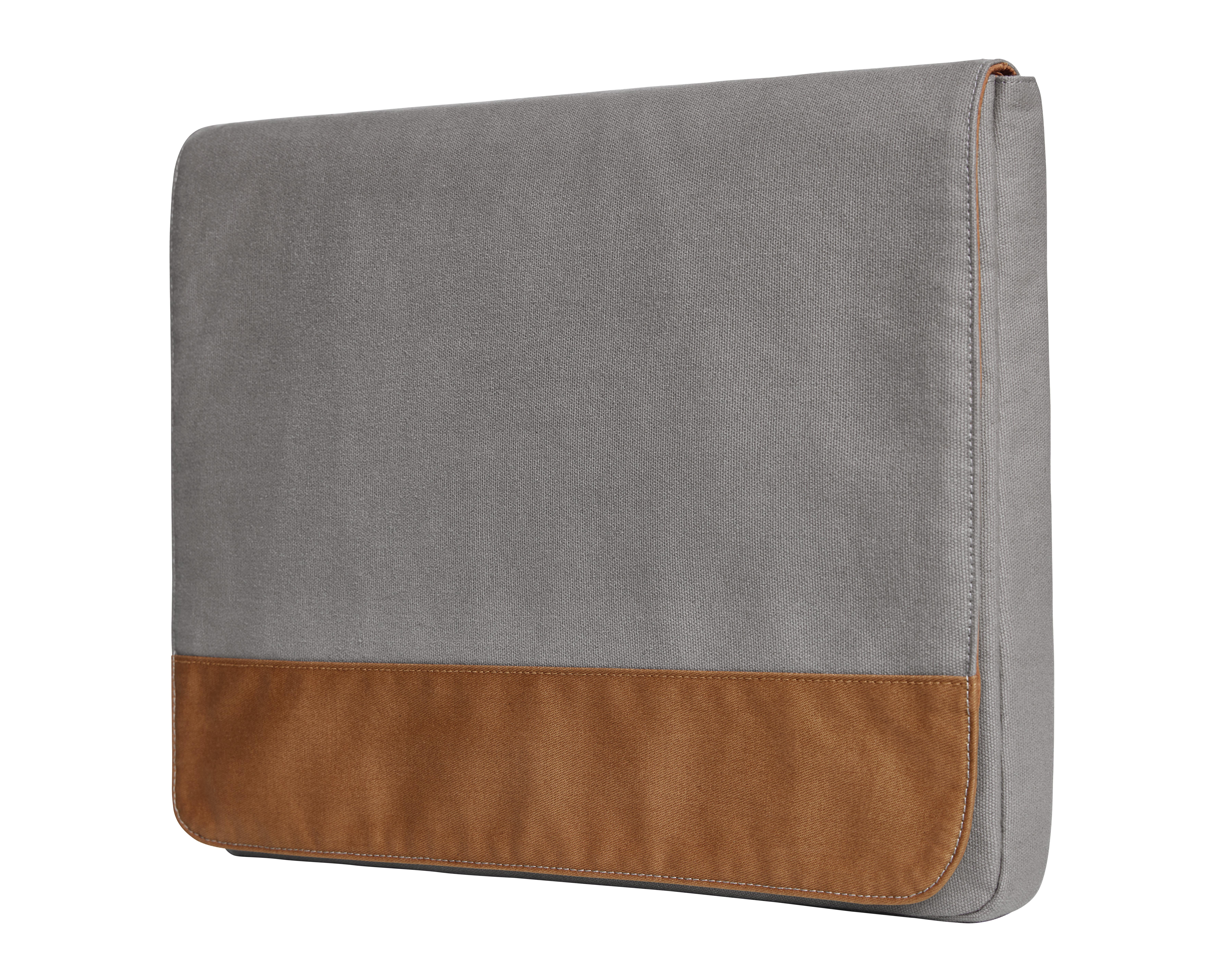 Moderne, aufwändig verarbeitete Notebook-Hülle; liebevoll gestaltet mit beschichtetem Baumwoll-Besatz; geeignet für Notebook und DIN A4-Unterlagen; zwei flache Einsteckfächer auf der Front; Reißverschluss-Fach im Überschlag innen; großes Reißverschluss-Fach rückseitig; Magnet-Verschluss