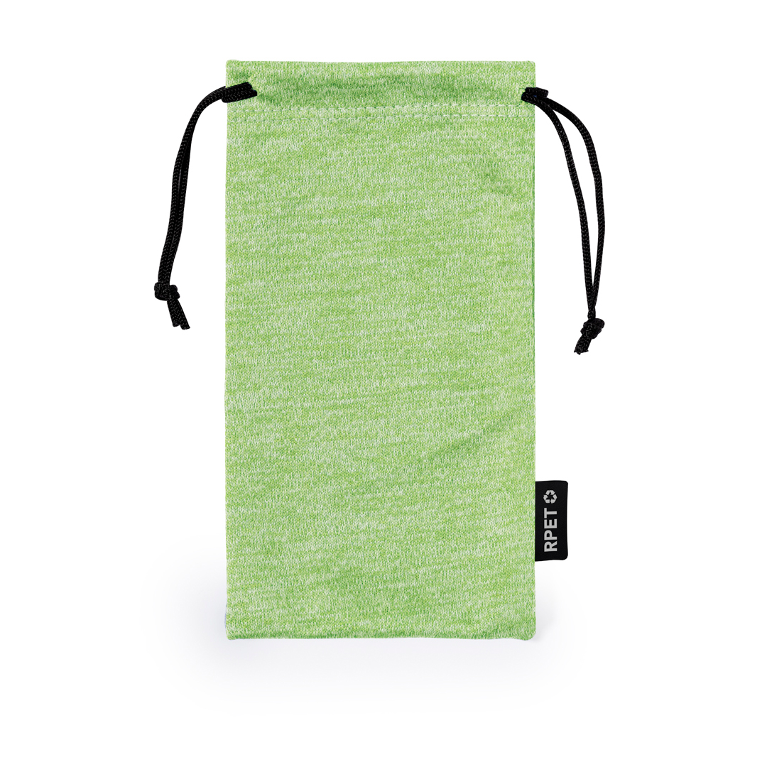 Brillenetui aus weicher RPET-Mikrofaser. Erhältlich in einer Vielzahl von lustigen Farben, mit selbstschließenden Schnüren und RPET-Label. RPET-Material besteht aus recyceltem Kunststoff und fördert so die Wiederverwendung von Kunststoffabfällen und trägt zur Nachhaltigkeit des Planeten bei.