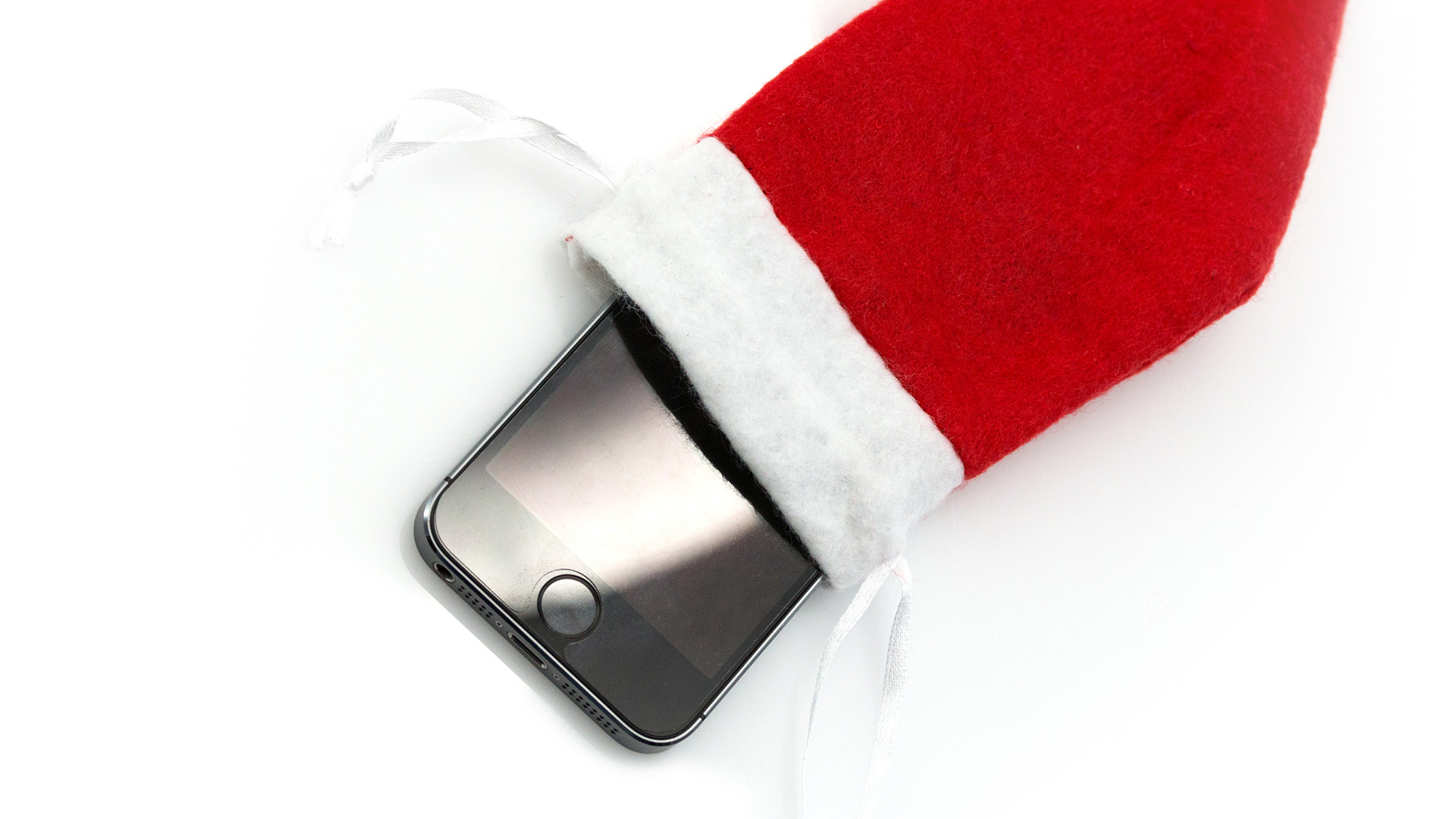 Hülle für Smartphone mit originellem Weihnachtsmützen-Design aus robustem Polyester in lustigen Farben. Mit Kordelzug.