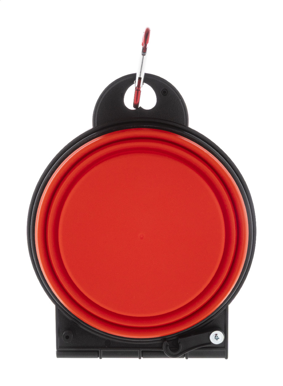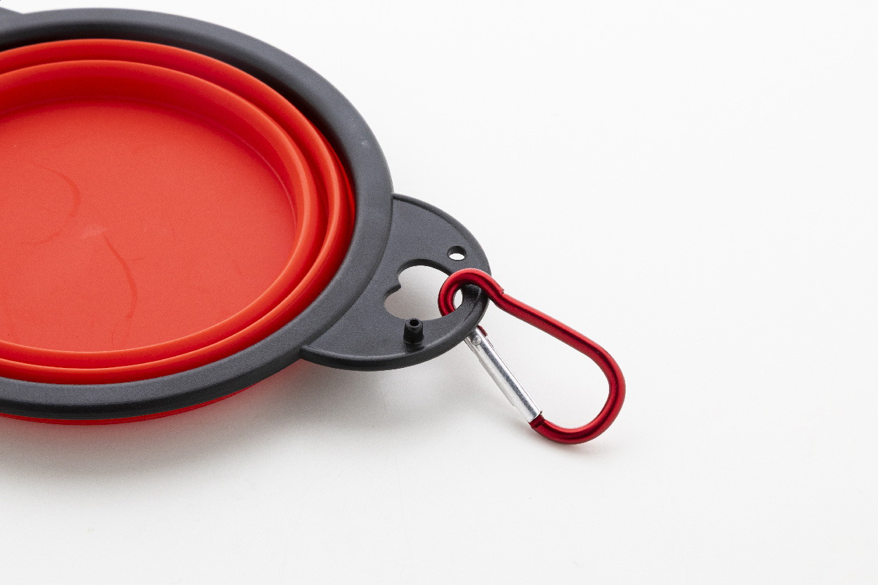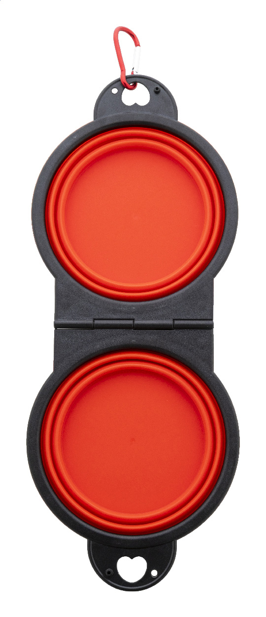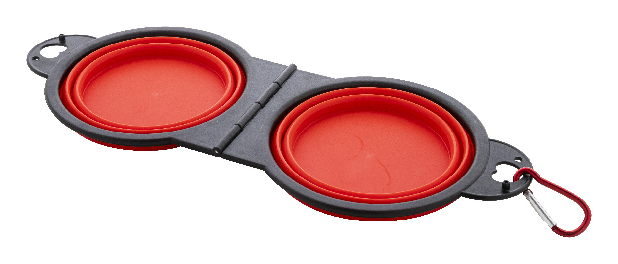 Faltbarer Hundenapf aus strapazierfähigem TPE mit zwei 450-ml-Fächern und farblich passendem Aluminiumkarabiner.