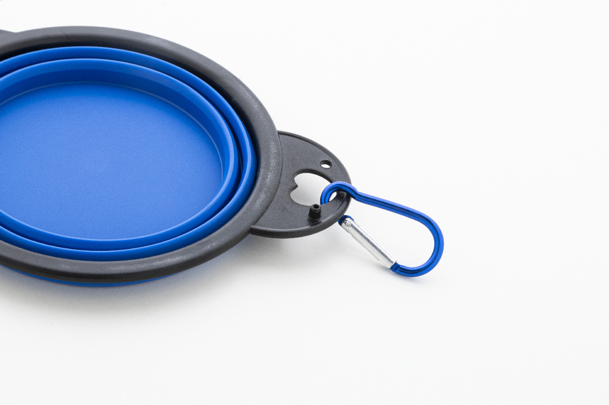 Faltbarer Hundenapf aus strapazierfähigem TPE mit zwei 450-ml-Fächern und farblich passendem Aluminiumkarabiner.