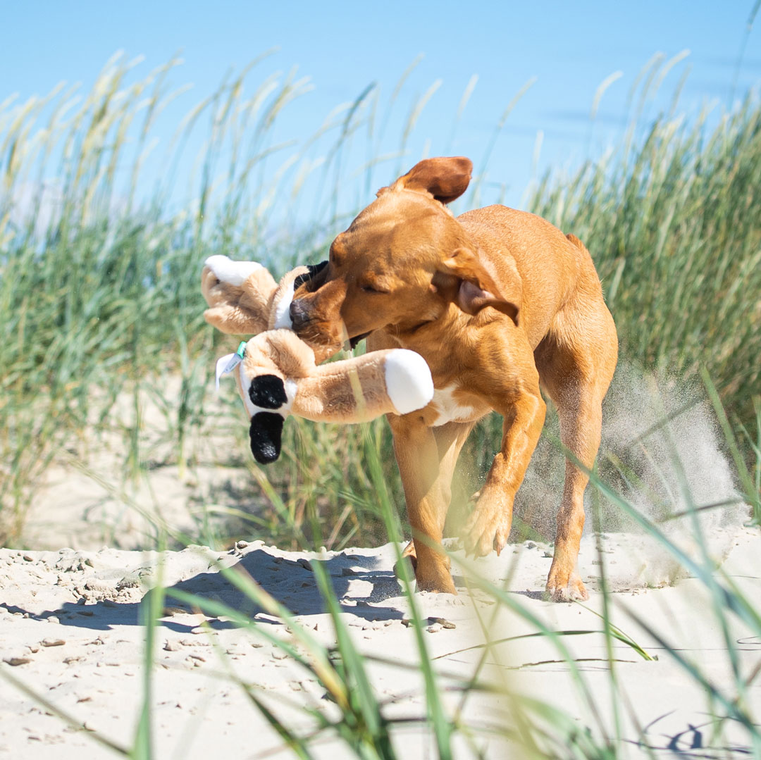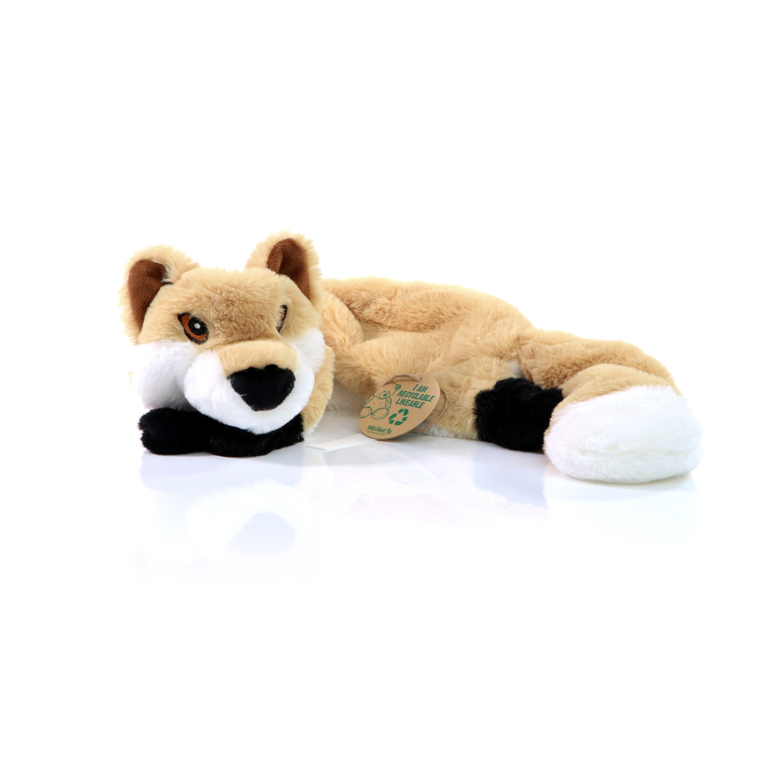 Ressourcenschonend handeln ist mehr als ein Trend, es sichert die Welt, in der Hund und Herrchen leben. Toben, animieren, apportieren und kuscheln – dieses superweiche Hundespielzeug RecycelFuchs macht alles mit und besteht aus genutzten und recycelten Plastikflaschen, zudem sind Augen und Nasen aufgestickt. Für die Herstellung des Materials werden etwa 10 PET-Flaschen (500ml) verwendet.