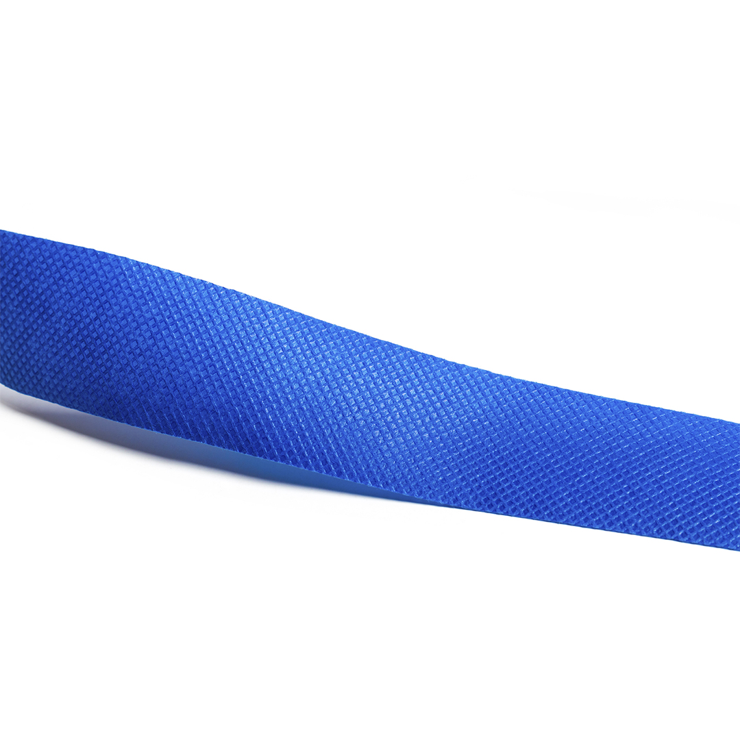 Hutband aus Vliesstoff in verschiedenen Farben. Geliefert in kompletten Rollen von 250 m Länge, mit ca. 350 Bändern von 67 x 3,2 cm.