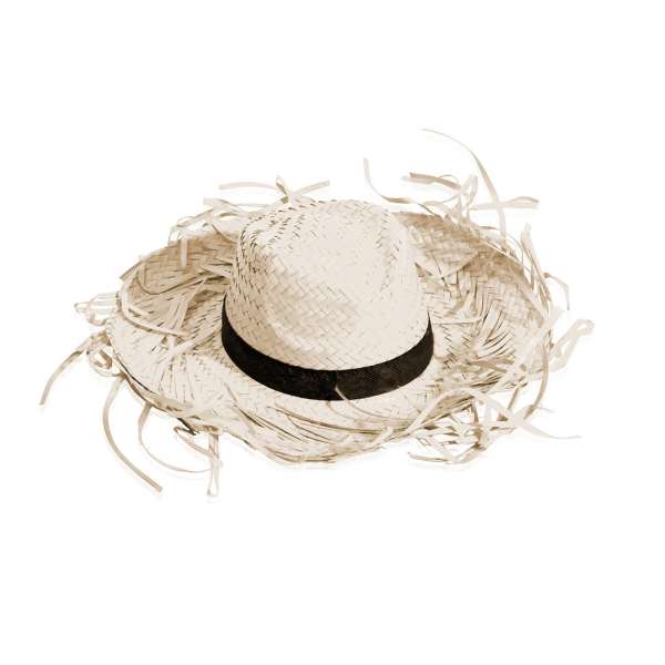 Strohhut in Weiß mit komfortablem Innenband und fransigem Rand.