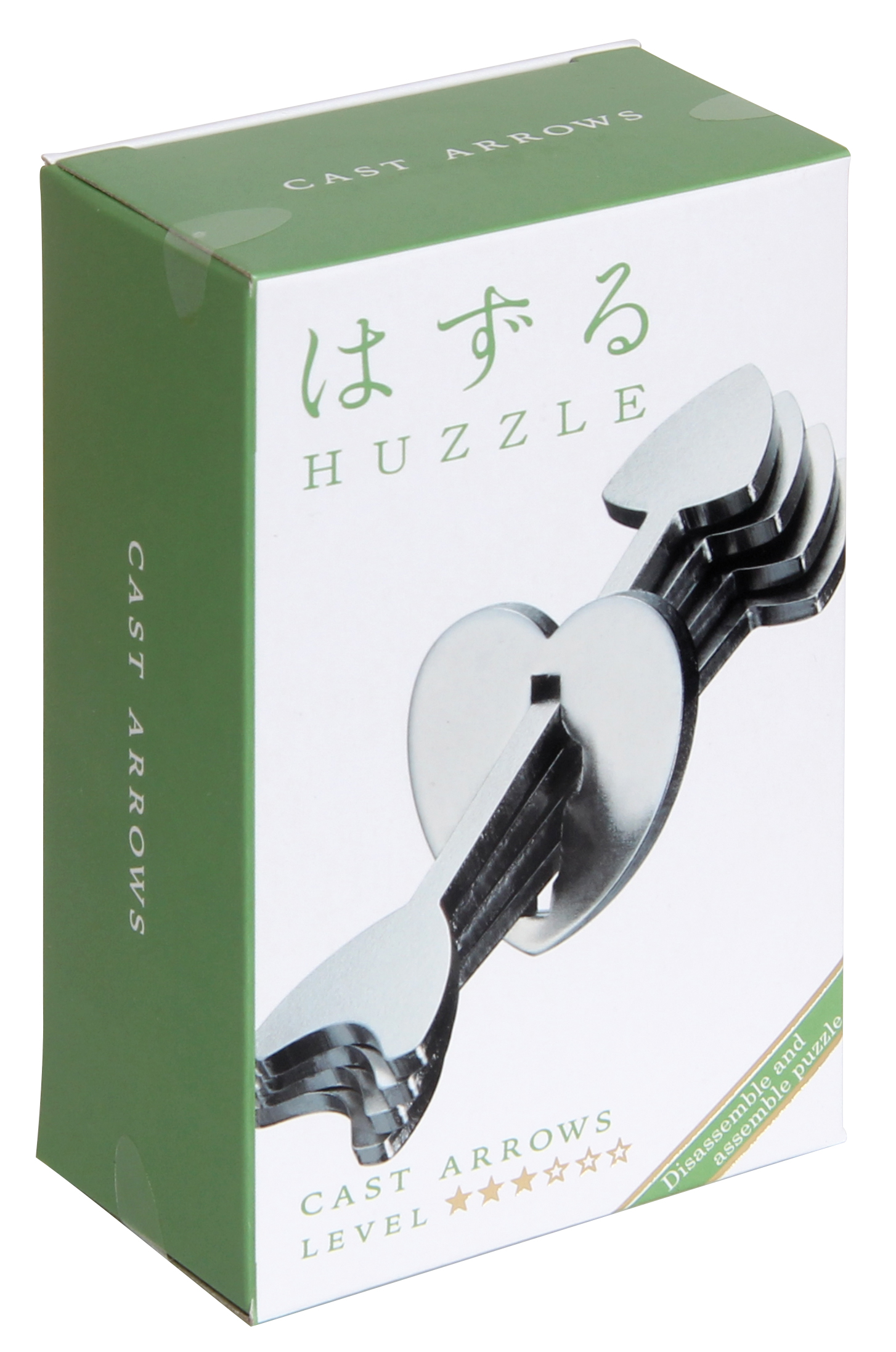 Aus der Serie der bekannten Huzzle Cast Puzzles. Vier Pfeile stecken in einem Herz aus Metall. Die Pfeile sollen entfernt und wieder eingebaut werden. Was hat sich Cupido nur dabei gedacht? Das perfekte Geschenk zum Valentinstag. Schwierigkeitsgrad 3.