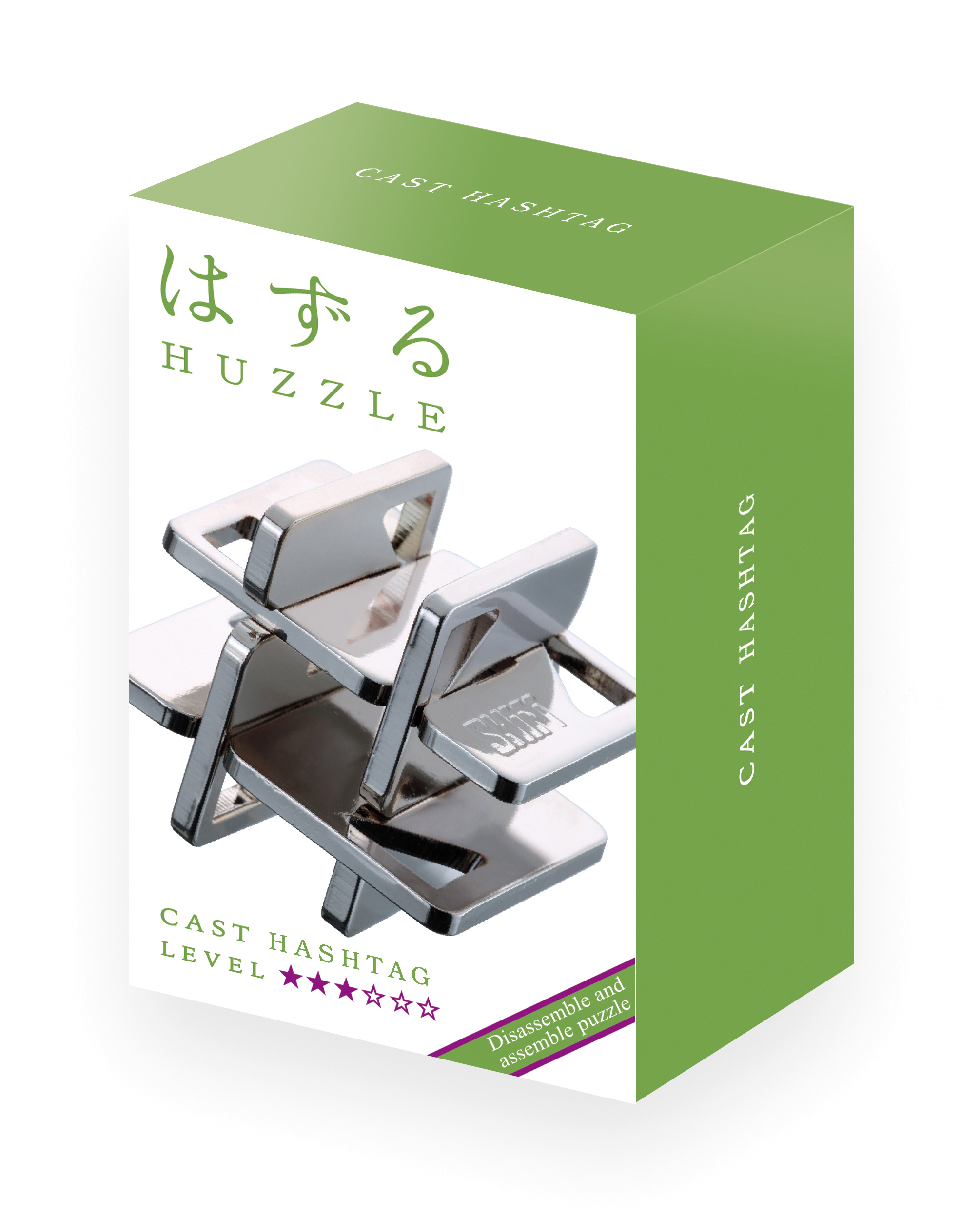 Aufgabe der verzwickten Metallpuzzles ist es, die Teile voneinander zu lösen und wieder zusammen zufügen. Der Name setzt sich zusammen aus 'HUZZLE' von 'to hug and nuzzle' (= umarmen und liebhaben) und 'to cast' (= Metall gießen). Die Puzzles werden aus Gießzink gegossen. Schwierigkeitsgrad 3 Sterne.